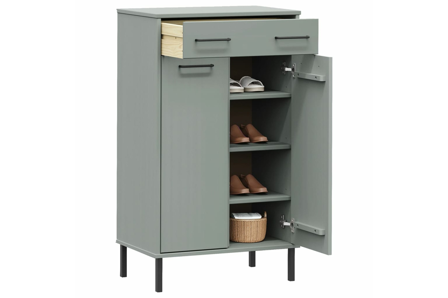 vidaXL 350986 Shoe Rack With Metal Legs Grey Solid Wood Pine Oslo