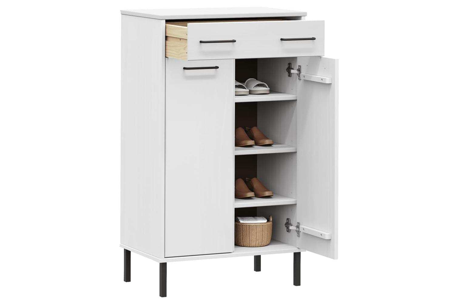 vidaXL 350987 Shoe Rack With Metal Legs White Solid Wood Pine Oslo