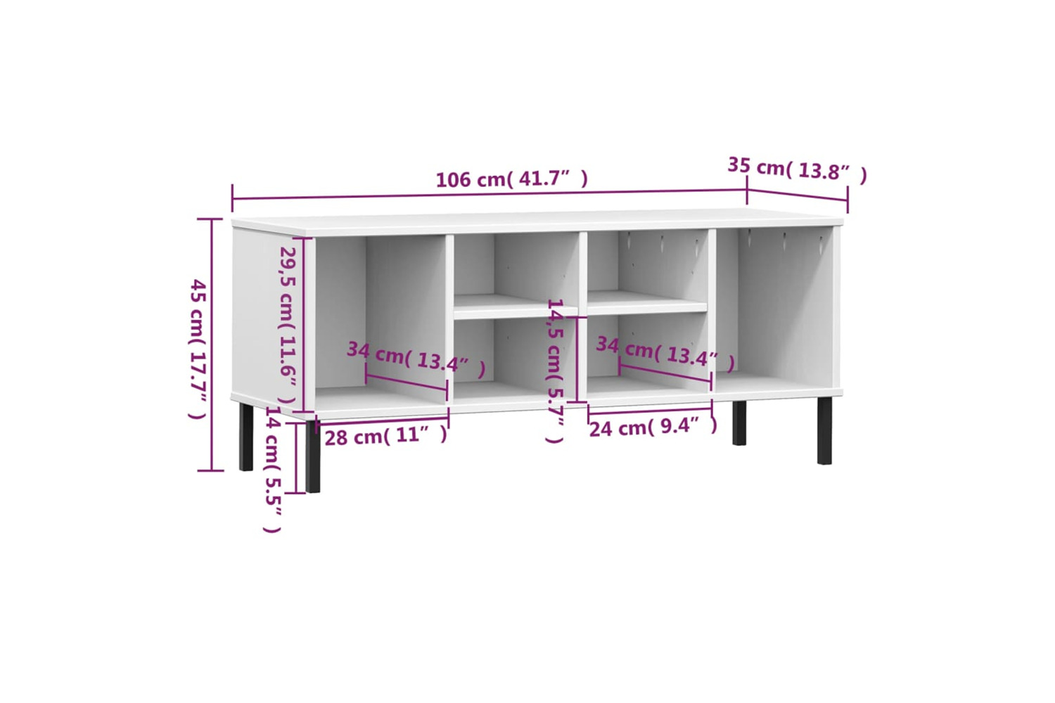 - Overall dimensions: 106 x 35 x 45 cm (W x D x H)