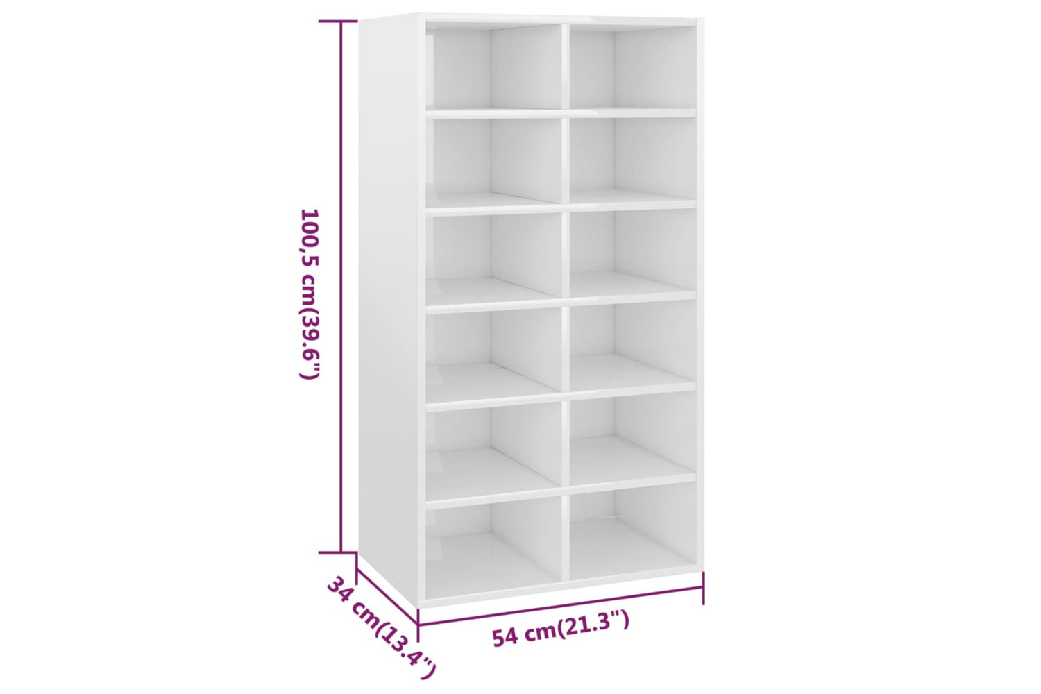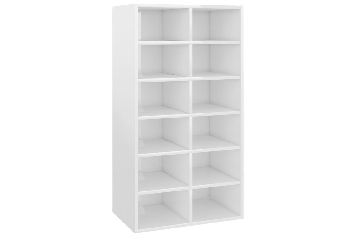 This rack is made of quality engineered wood, which is durable and sturdy for long service life. It is in a simple design, which can fit easily into your existing living space. With ample space of 12 compartments, this rack can accommodate many shoes, storage boxes, hobby utensils, collectibles and more. Wall mounting accessories and a wall anchor to prevent the rack from tipping over are included in delivery. It is easy to clean with damp cloth. The rack is easy to assemble.
