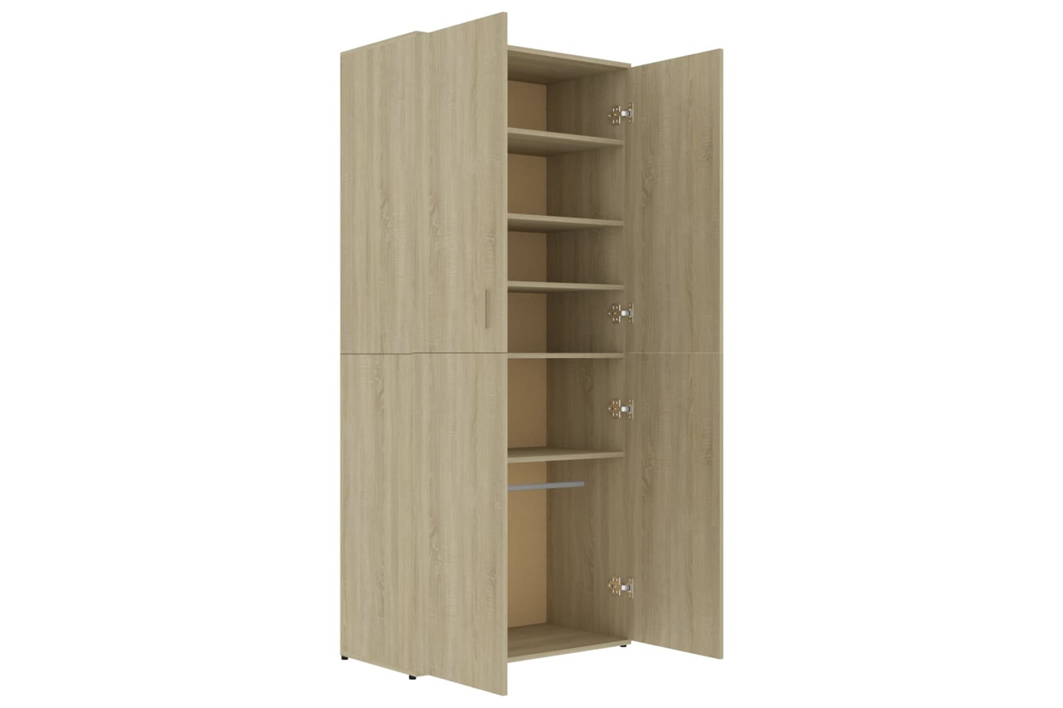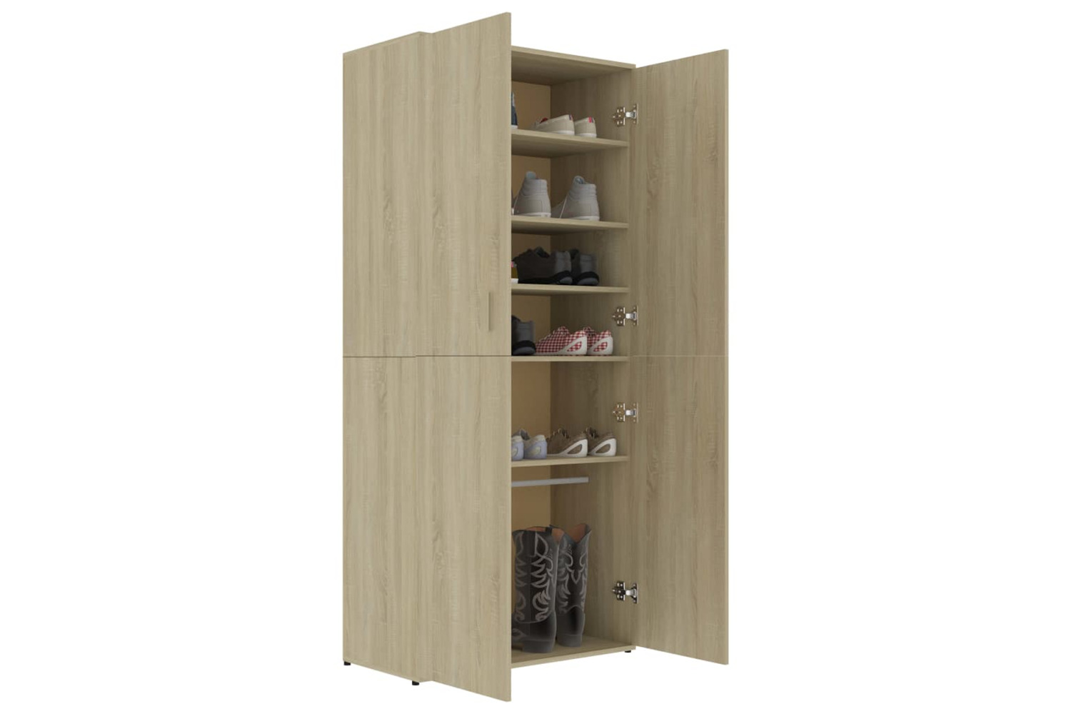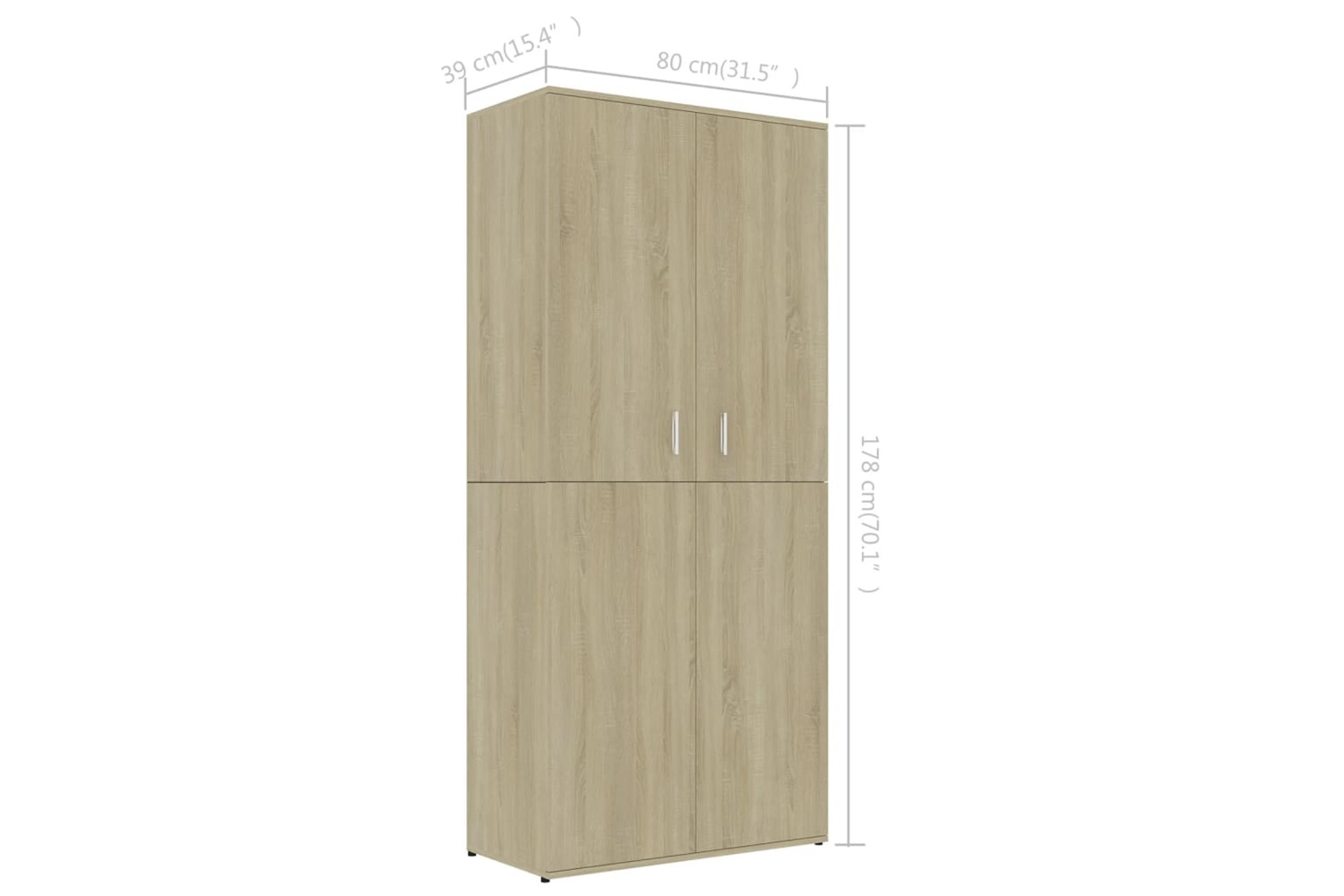Made of strong engineered wood, this hall cabinet is exceedingly durable and sturdy. The shoe cabinet has 6 Shelf, providing ample space for keeping your shoes well organised. Thanks to the 2 doors, the shoe organiser protects your shoes from dust and keeps them out of sight.