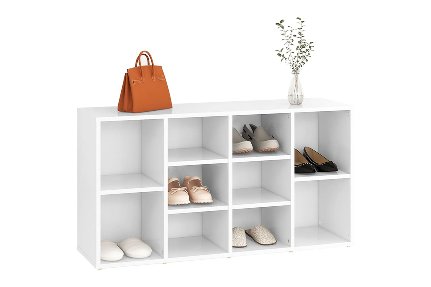 The shoe cabinet features 10 Shelf, offering ample space to store your shoes. The sturdy top is ideal for keeping your essentials or other decorative items. Additionally, the shoe organiser is easy to clean with a damp cloth.