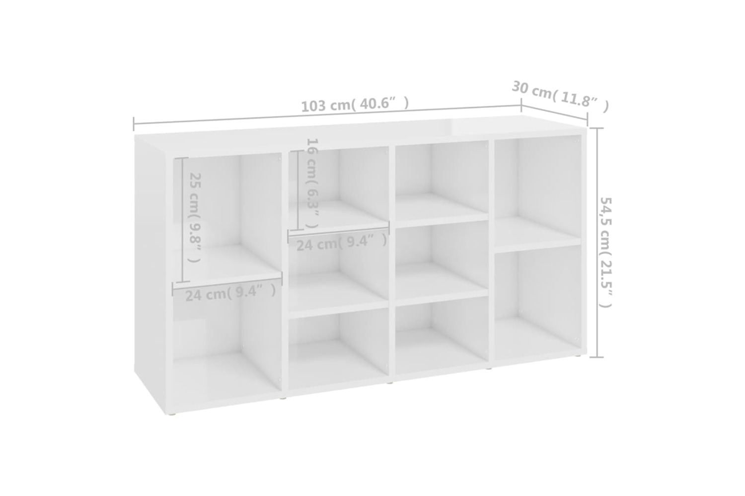 vidaXL 803296 Shoe Bench High Gloss White 103x30x54.5cm Engineered Wood