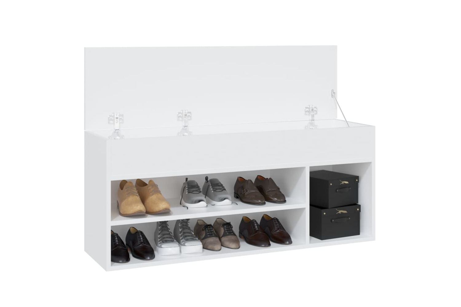 This shoe bench, with a stylish design, makes a great addition to your interior and keeps your shoes organised and well ventilated.