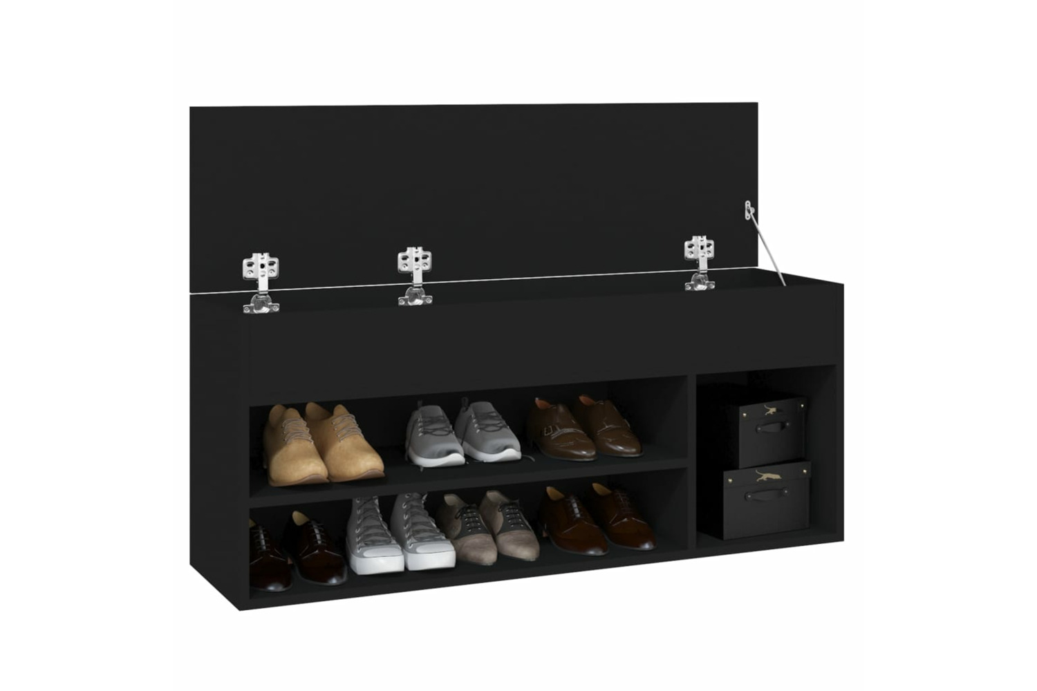 This shoe bench, with a stylish design, makes a great addition to your interior and keeps your shoes organised and well ventilated.