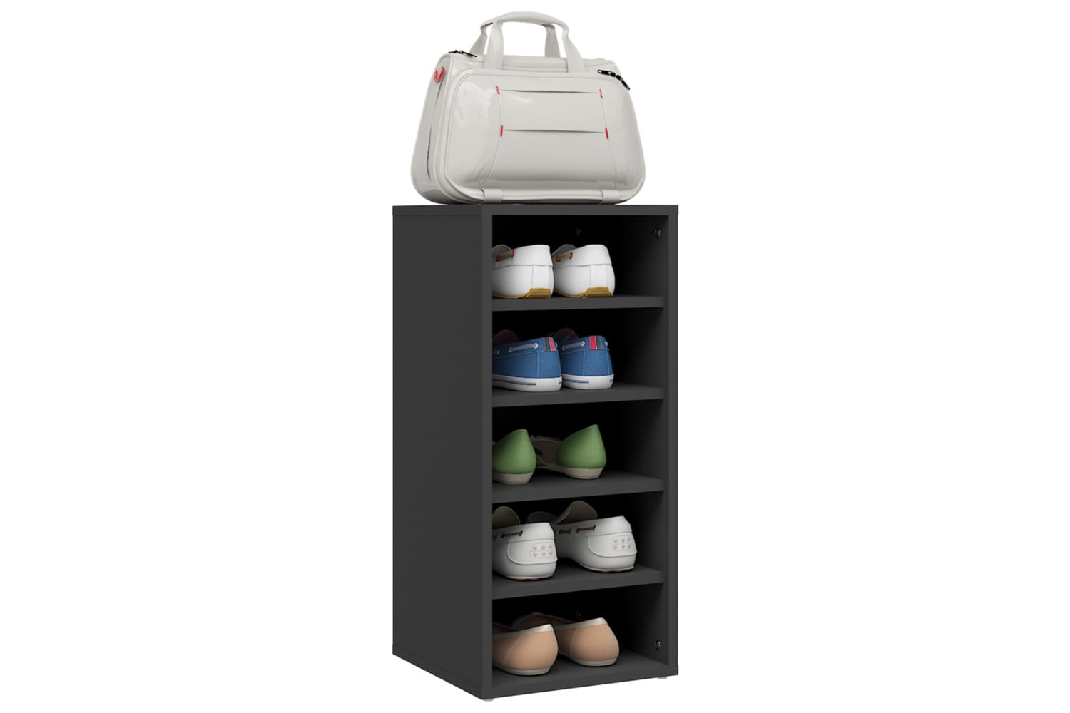This shoe organiser is durable and sturdy. The shoe rack has 5 compartments, providing ample space for keeping your shoes well organised. Additionally, you can fix it on the ground or the wall based on your own needs.
