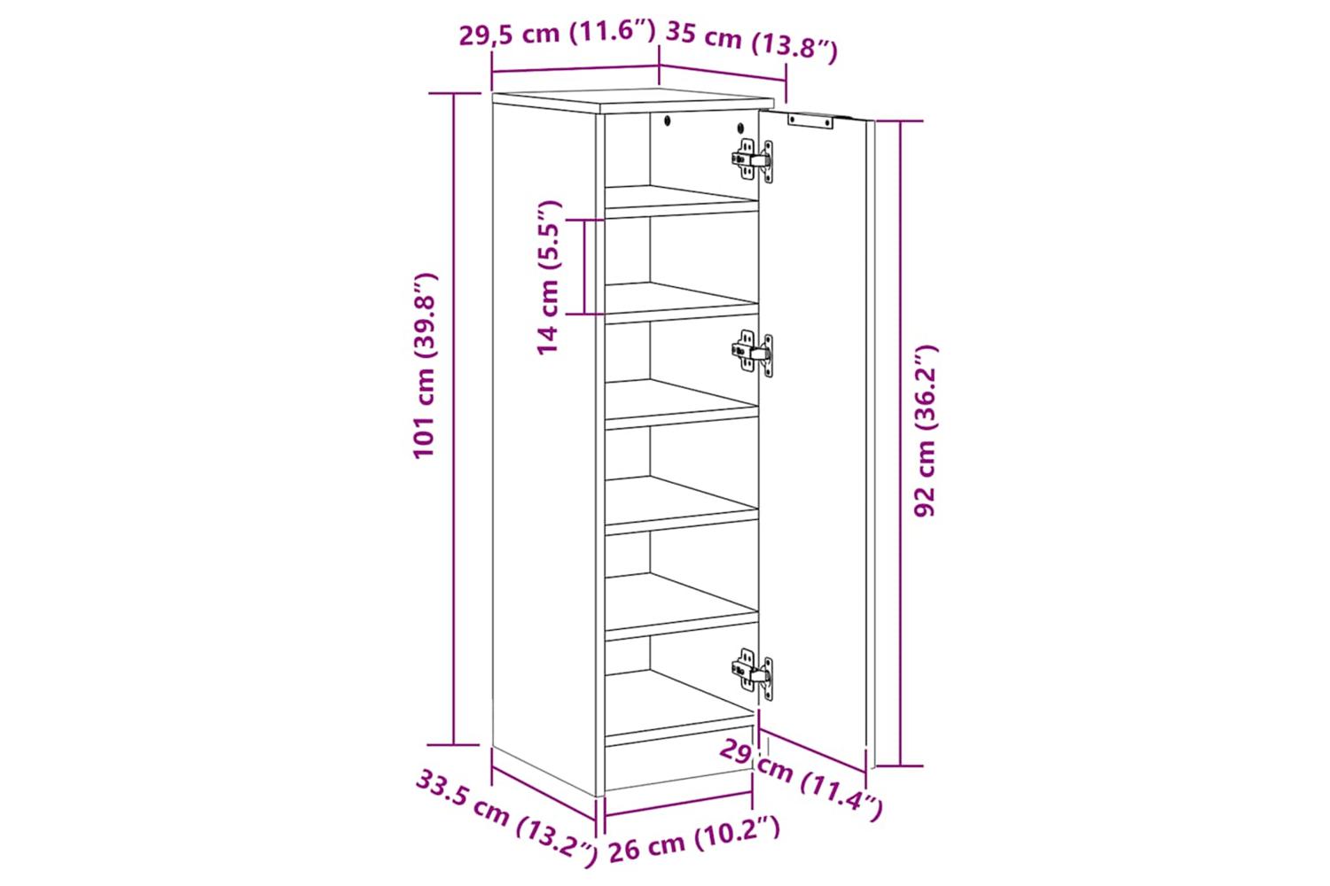 • Ample storage space: This shoe organiser boasts a door and shelves, which allows you to keep your shoes within reach and well organised, as well as protect them from dust.