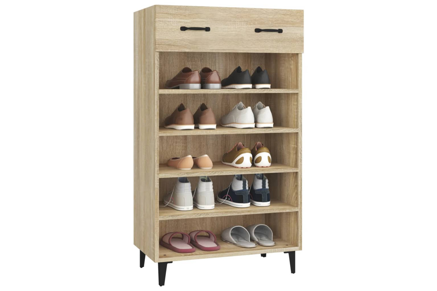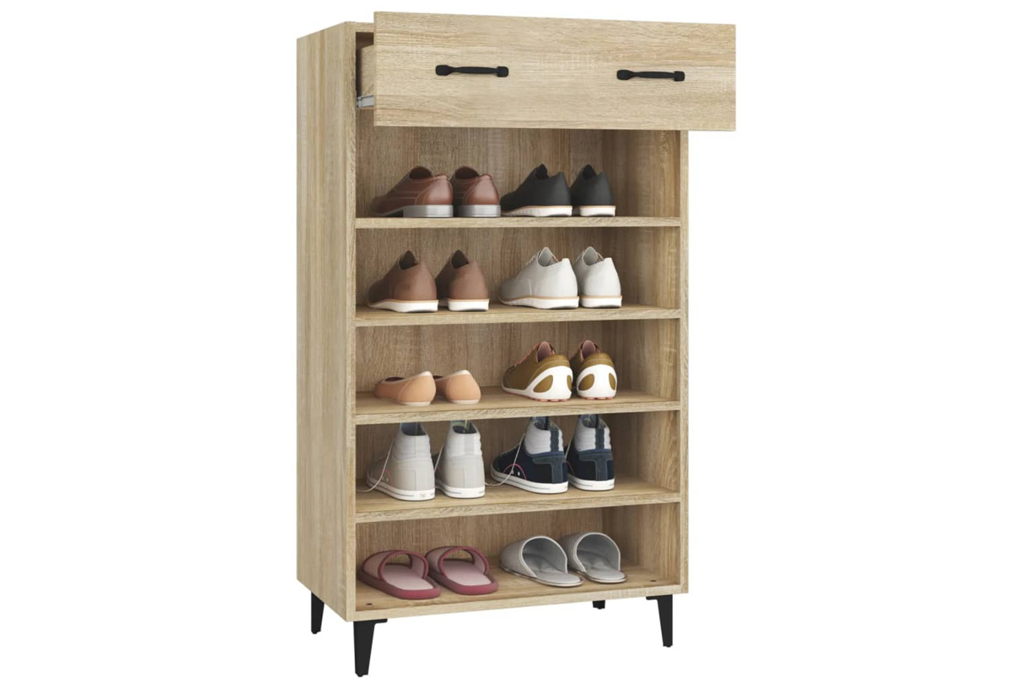 - Ample storage space: This shoe cupboard with shelves and a drawer allows you to keep your shoes well organised and also place some small items, such as keys.