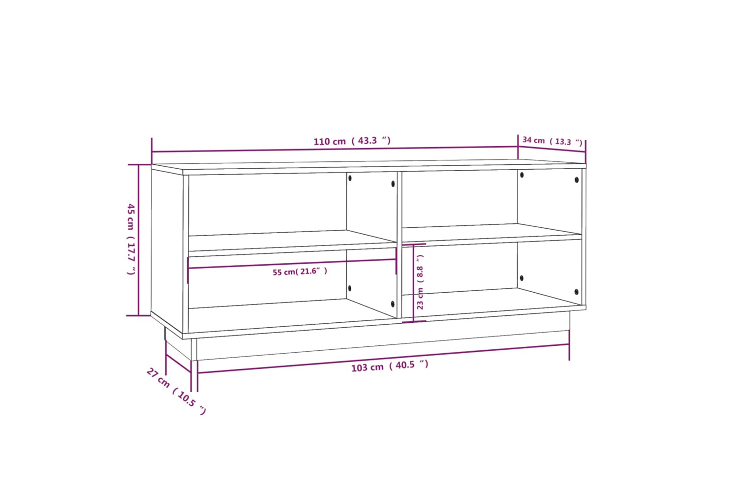 - Dimensions: 110 x 34 x 45 cm (W x D x H)