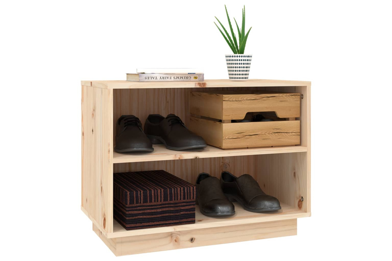 This storage cabinet is made of solid pinewood, making it stable and sturdy. The shoe rack provides ample space for keeping your shoes well organised and within reach. Additionally, the stable top can be used to display decorative objects such as photo frames or potted plants.