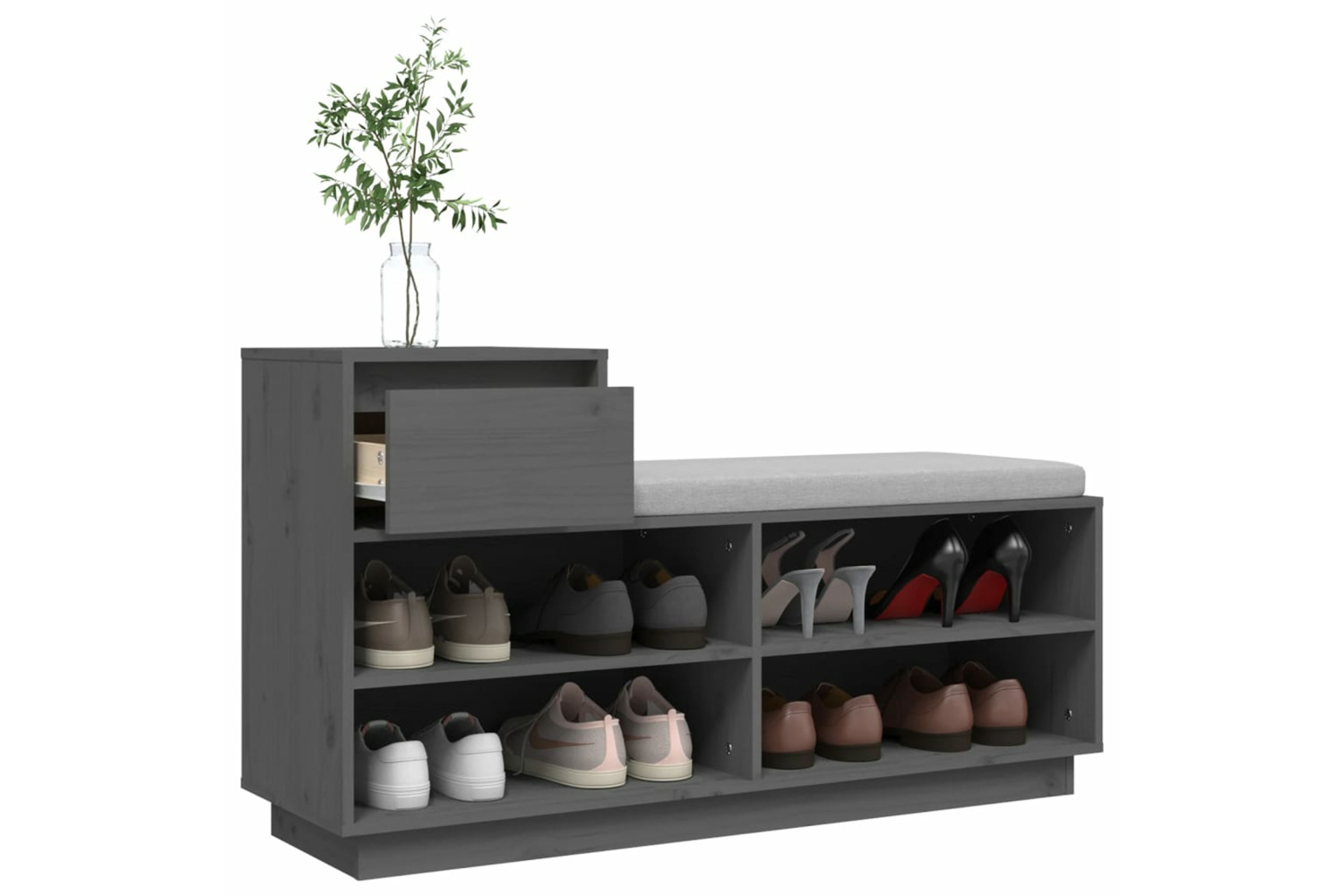vidaXL 814451 Shoe Cabinet Grey 110x34x61cm Solid Wood Pine is rated
