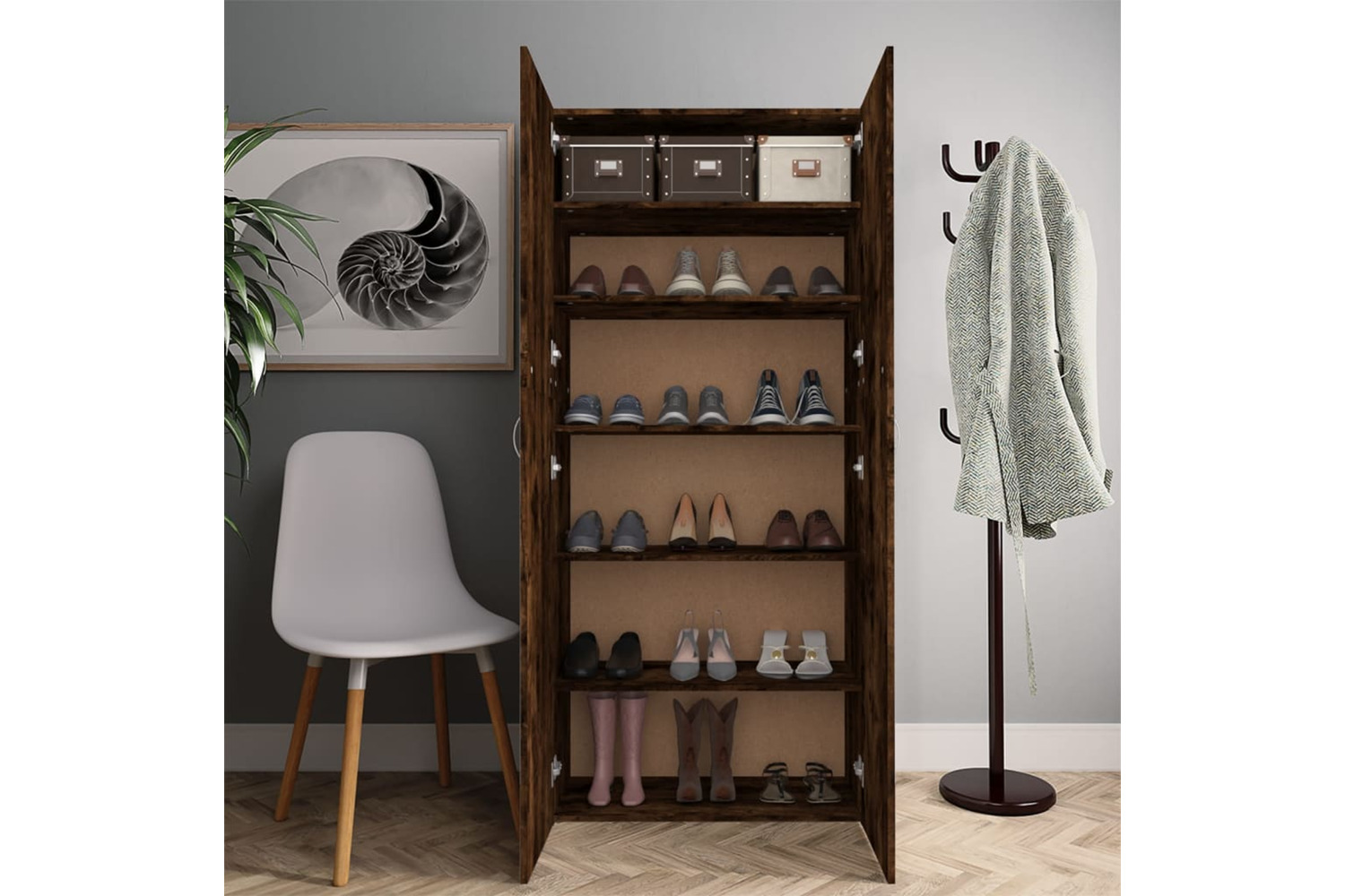 Keep your shoes away from dust and cluttering to create a tidy environment with this elegant shoe cabinet!