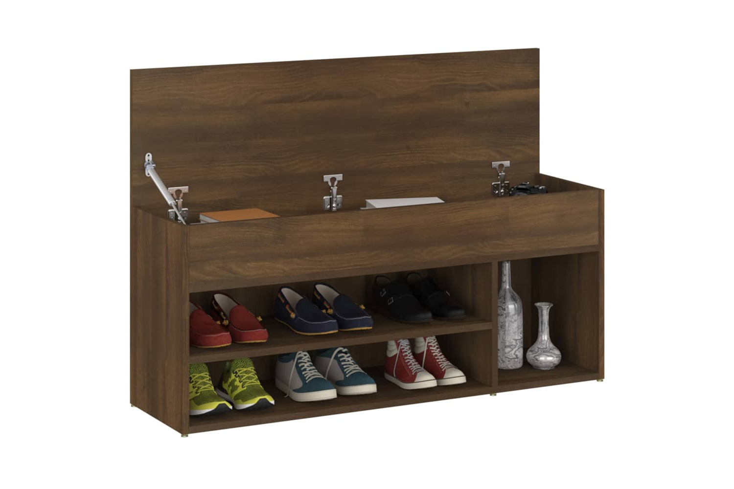 This trendy shoe bench is an exceptionally practical spot for neatly storing your shoes.