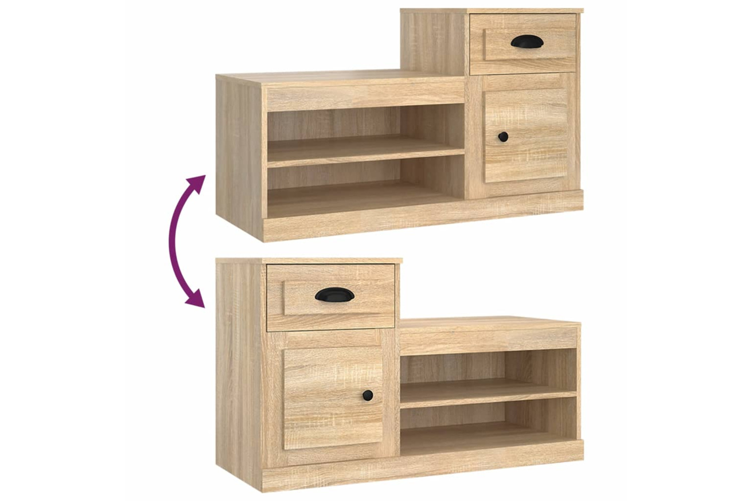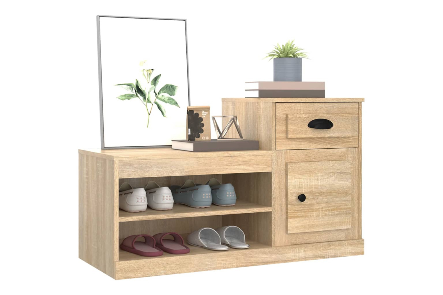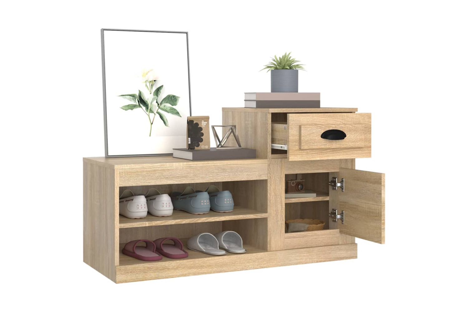 - Ample storage space: The shoe cupboard features a low and a high cabinet, providing ample storage space for keeping all types of shoes and other small items well organised.