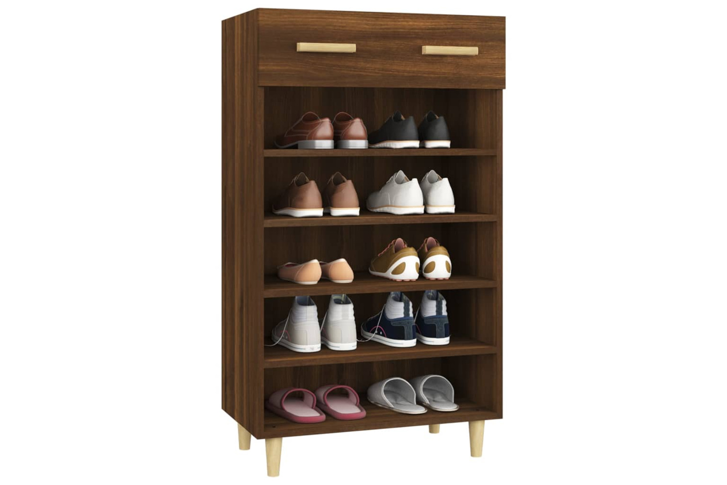 - Ample storage space: The shoe storage has 5 compartments and 1 drawer, providing ample space for keeping your shoes well organised. With this handy shoe cupboard, you will no longer be annoyed by shoes cluttering your floor.