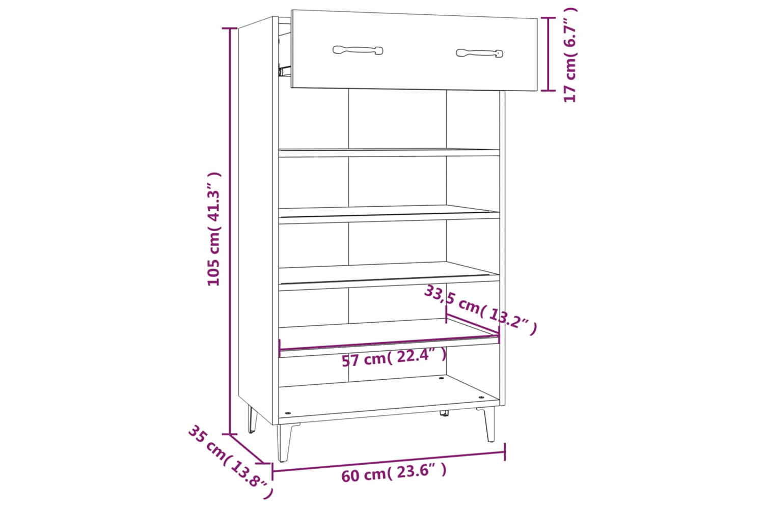• Dimensions: 60 x 35 x 105 cm (W x D x H)