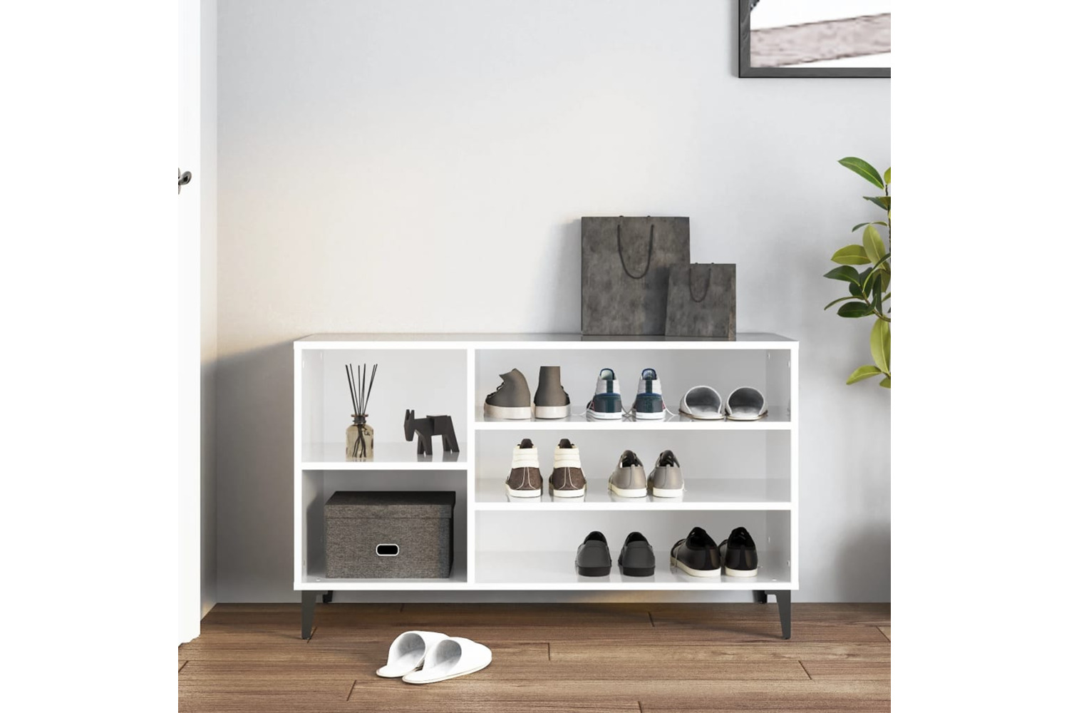• Ample storage space: This hall cabinet has multiple compartments, providing ample storage space for keeping all types of shoes.