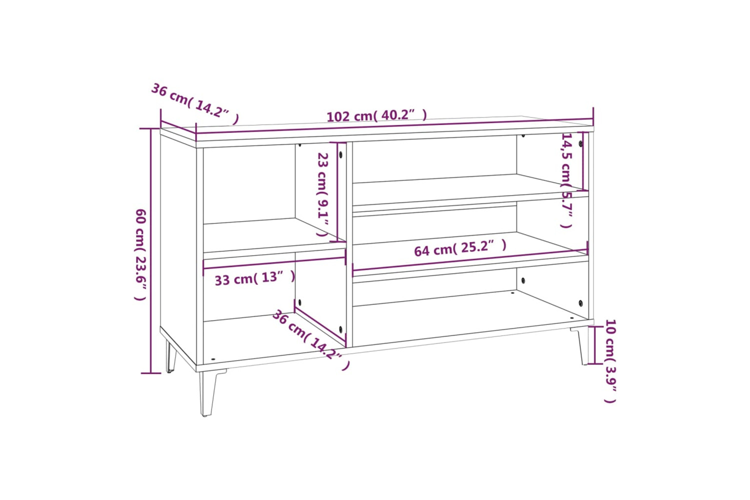 • Dimensions: 102 x 36 x 60 cm (W x D x H)