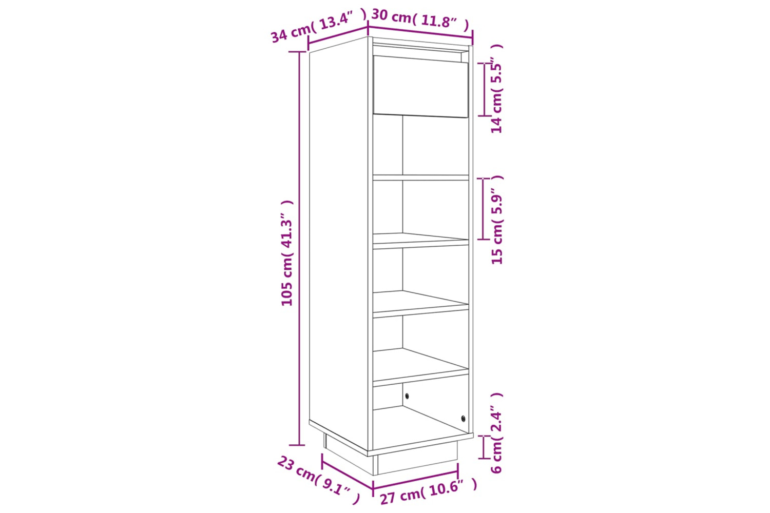 vidaXL Shoe Cabinet Honey Brown 30x34x105cm Solid Wood Pine