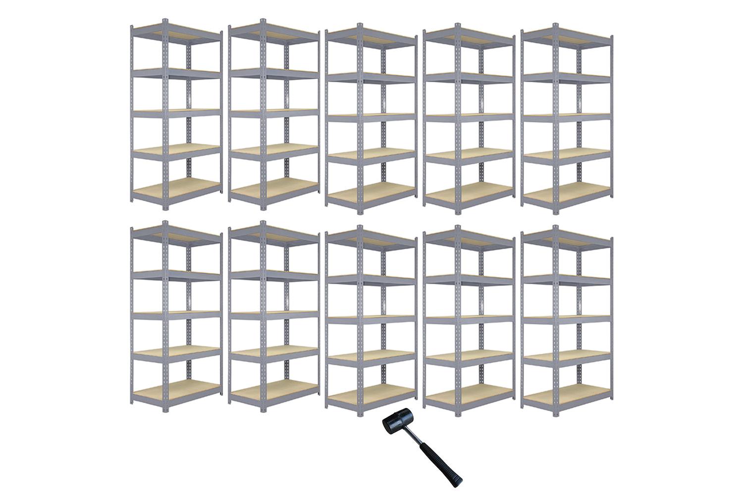 Discover a new level of organisation with the MONSTERSHOP 10536 - 10 x Q-Rax Grey Metal Racking Units! Designed to fit perfectly into garages, warehouses, utility rooms, sheds, and greenhouses, this versatile storage solution is perfect for all your heavy-duty needs, from bulky tools and garden equipment to spare paint pots. Crafted with robust, high-quality steel frames and resilient 8mm thick MDF boards, these units ensure the durability and resilience crucial for storing your essential items.