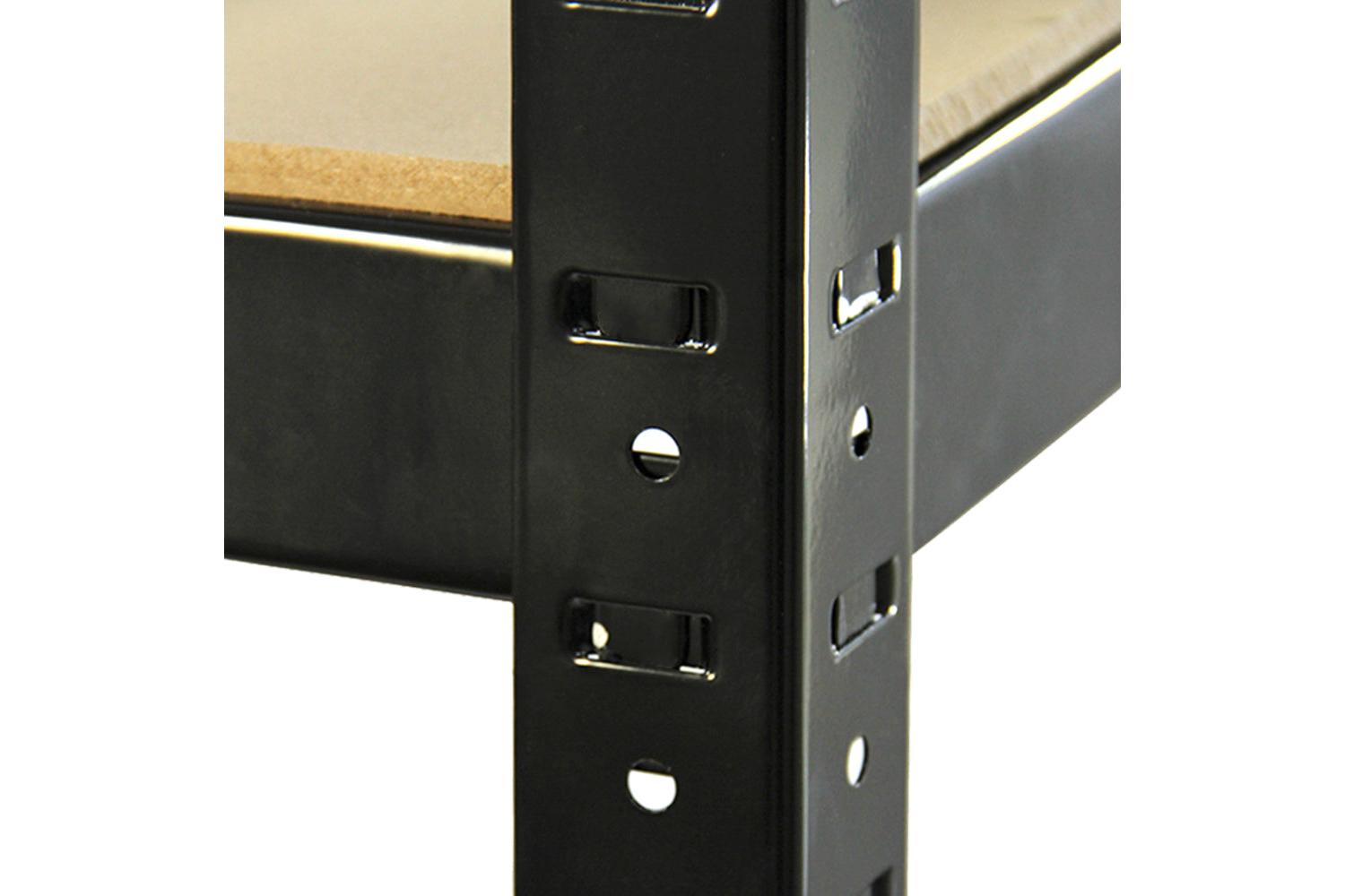 From the reliable brand, MONSTERSHOP, comes the MONSTERSHOP 25480 - 3 x 90cm T-Rax Black Metal Racking Units. A hefty addition for all your heavy-duty storage needs. Designed and built for garage legends, these independently-standing shelving units serve as your garage's ultimate organiser, aiding neat storage of heavy items such as bulky DIY tools, spare paint pots, and a growing collection of gardening or workplace supplies.