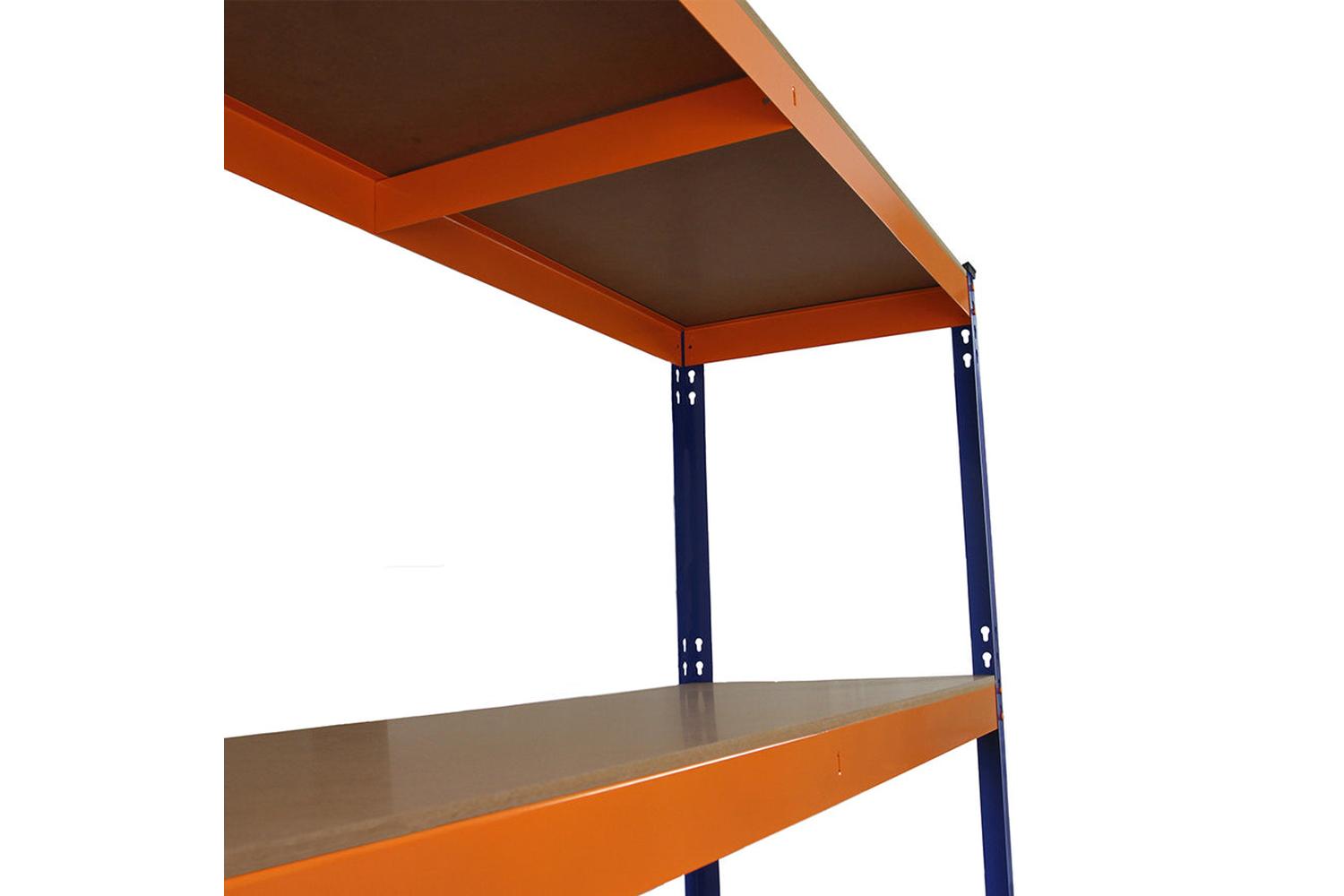 The racks stand tall with moulded feet to assure extra sturdiness. Moreover, flaunting a layer of durable, powder coated blue and orange paint, these shelves are resistant and ready for your heavy-duty storage needs. These garage shelves measure 150cm wide x 50cm deep x 180cm high, fitting snugly into your workspace.