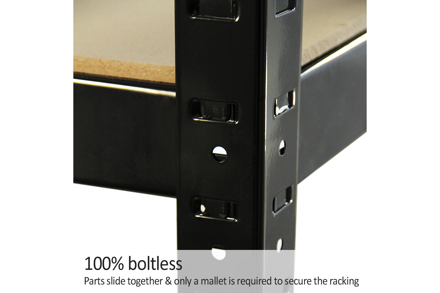 Thanks to the smart boltless assembly system, the racks are easy to put together and ready to use in minutes only requiring the use of the included rubber mallet. Simply slide the components into place and lock together using the keyhole mechanism, creating a strong storage unit perfect for garages, warehouses, utility rooms, sheds, and greenhouses. The shelves are also height adjustable giving you complete flexibility to maximise your storage options. The entire unit can also be separated in half creating two work benches or smaller shelves.