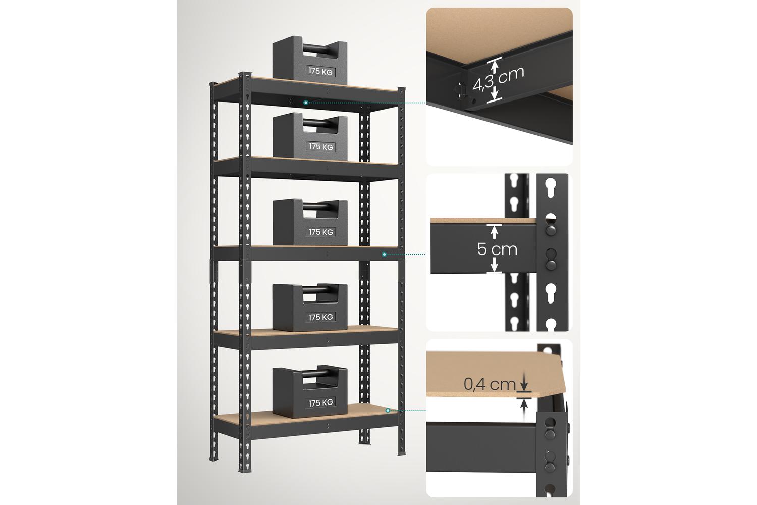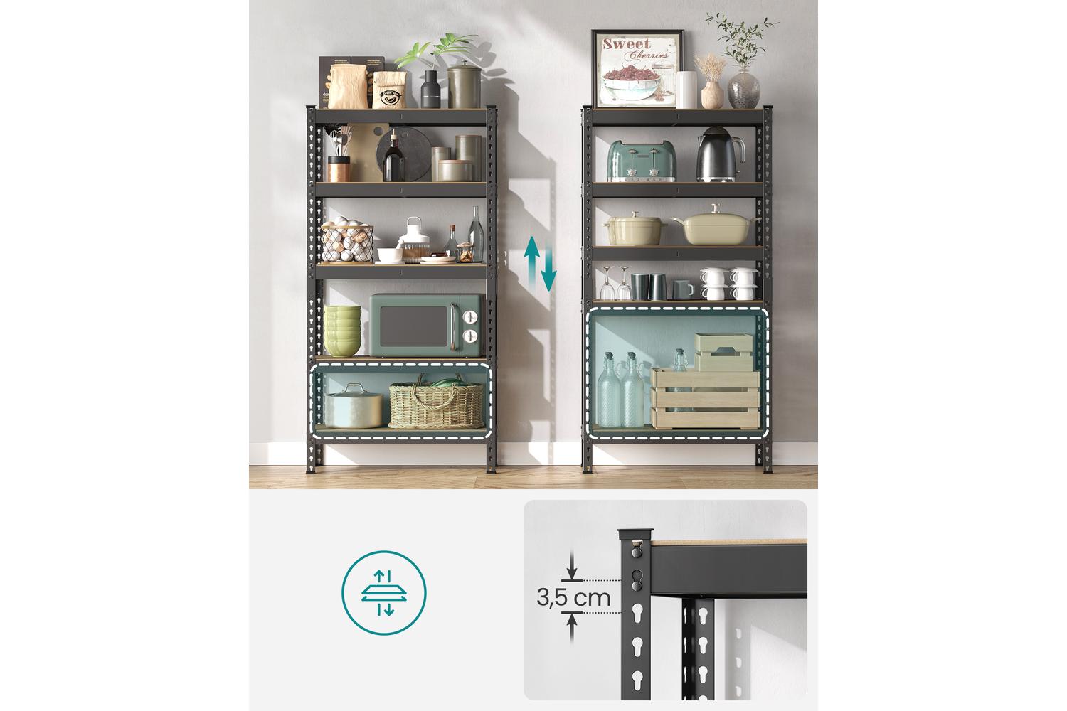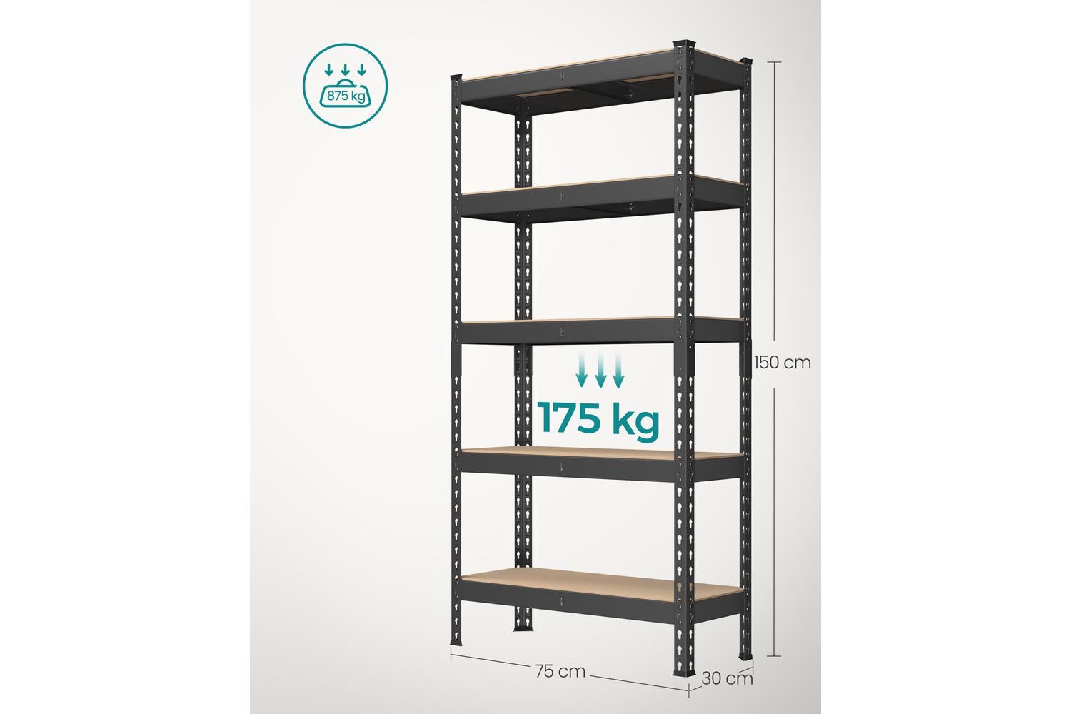 Transform your storage space with the SONGMICS Shelving Unit, the ultimate solution for garage, shed, or home organisation in Ireland. Designed for those who value strength, flexibility, and ease of use, this five-tier steel and MDF shelving unit is perfect for keeping your tools, boxes, and household essentials neatly arranged and easily accessible. Whether you are looking to declutter your garage, organise your pantry, or add extra storage to your office, this heavy-duty shelving system delivers reliable performance and a sleek, modern look.