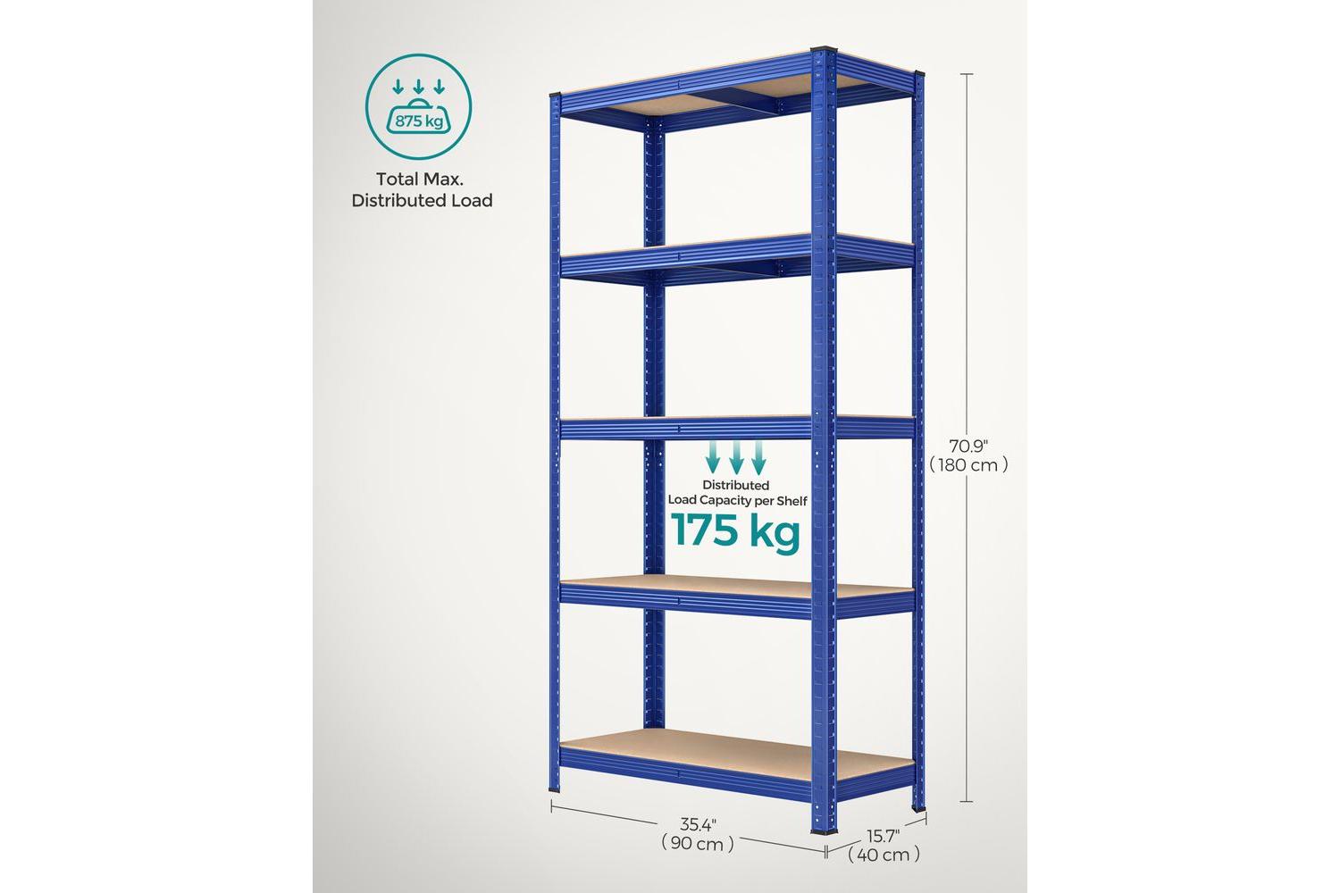 - Each shelf holds up to 175 kg (total 875 kg load capacity)