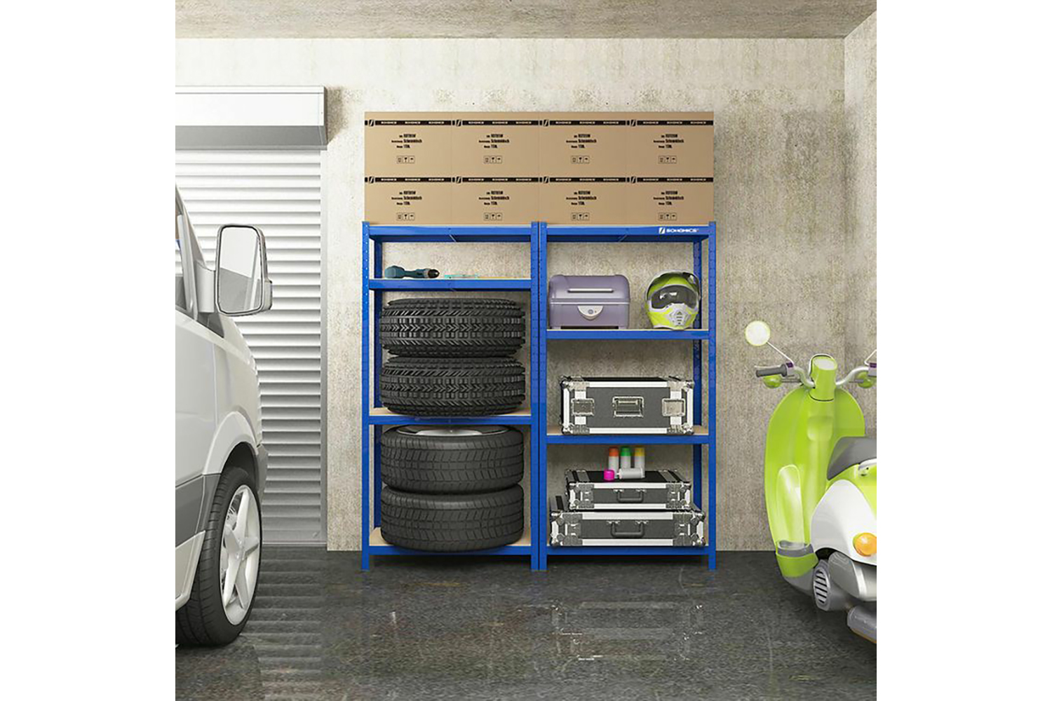 Whether large or small items, they all fit in this heavy-duty shelf! Car tyres, tool boxes, kneelers or large cleaning buckets? No problem! The height of the shelves can be easily adjusted. You can also divide the shelf into 2 small ones and use them separately in the garage and basement.