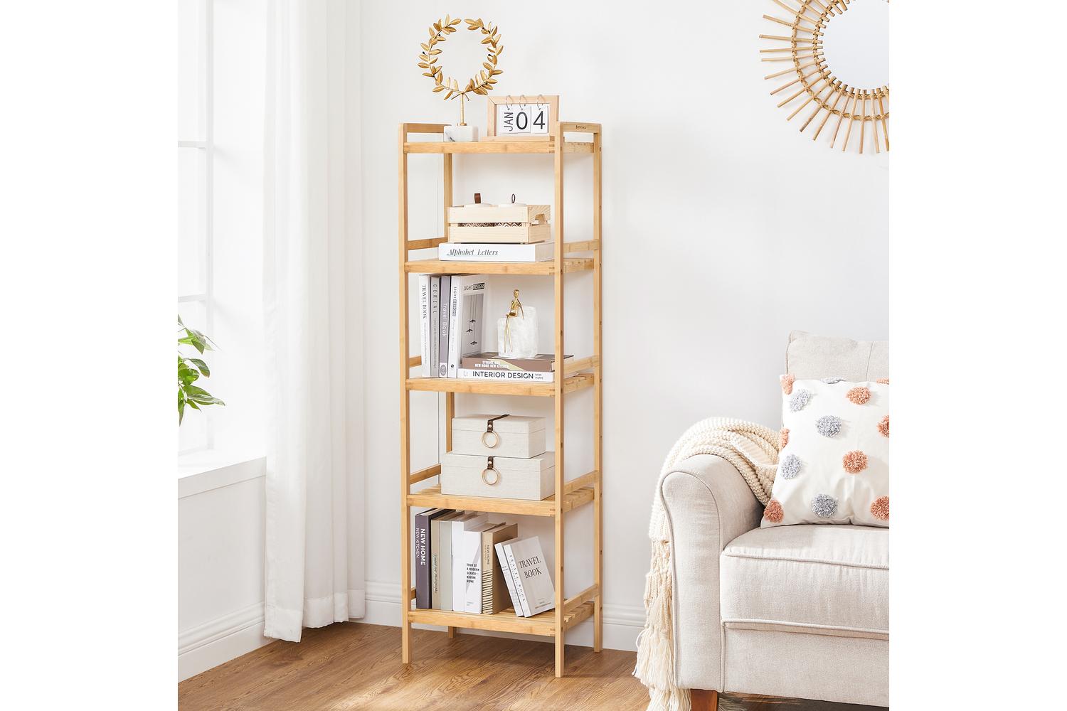 Transform your home with the SONGMICS Bamboo Shelf, the perfect solution for stylish and practical storage. Crafted from high-quality bamboo, this five-tier shelving unit brings a natural, refreshing touch to any Irish home, blending seamlessly with modern and traditional interiors alike. Whether you are looking to declutter your bathroom, organise your bedroom, or add extra storage to your living room, this versatile shelf is designed to meet your needs.
