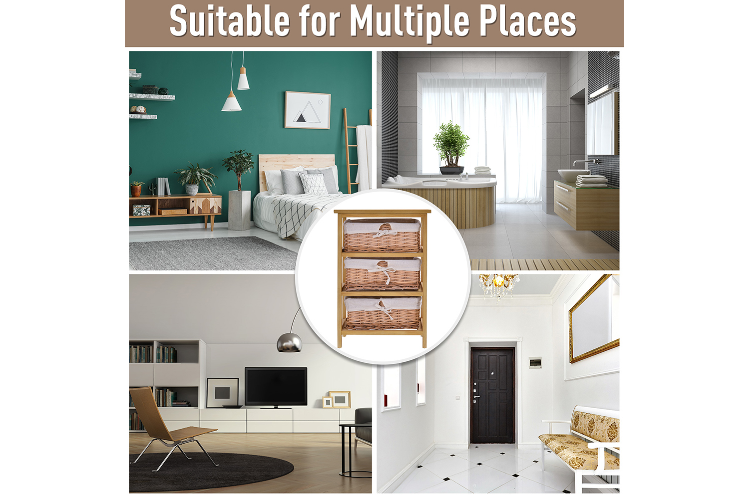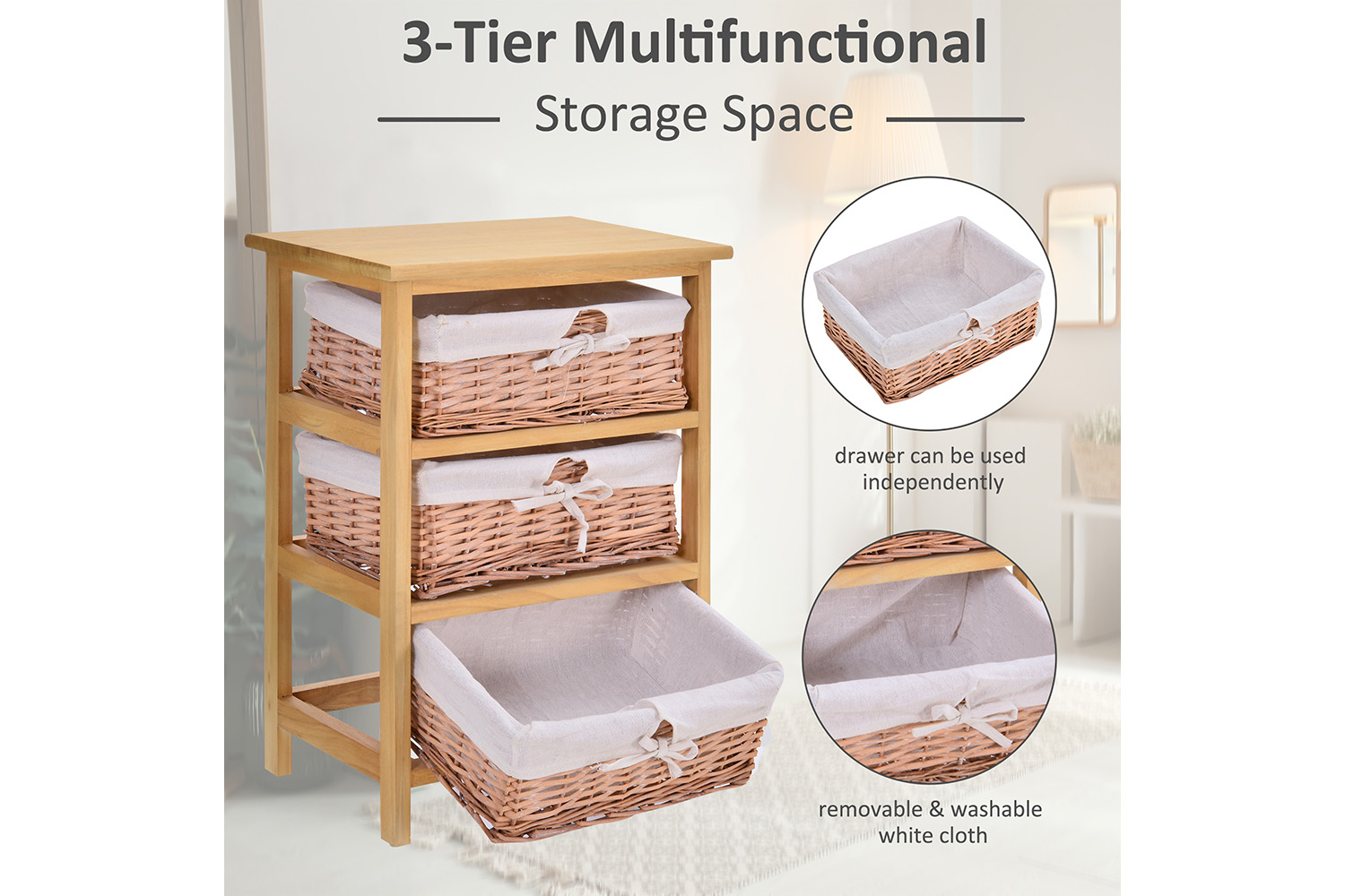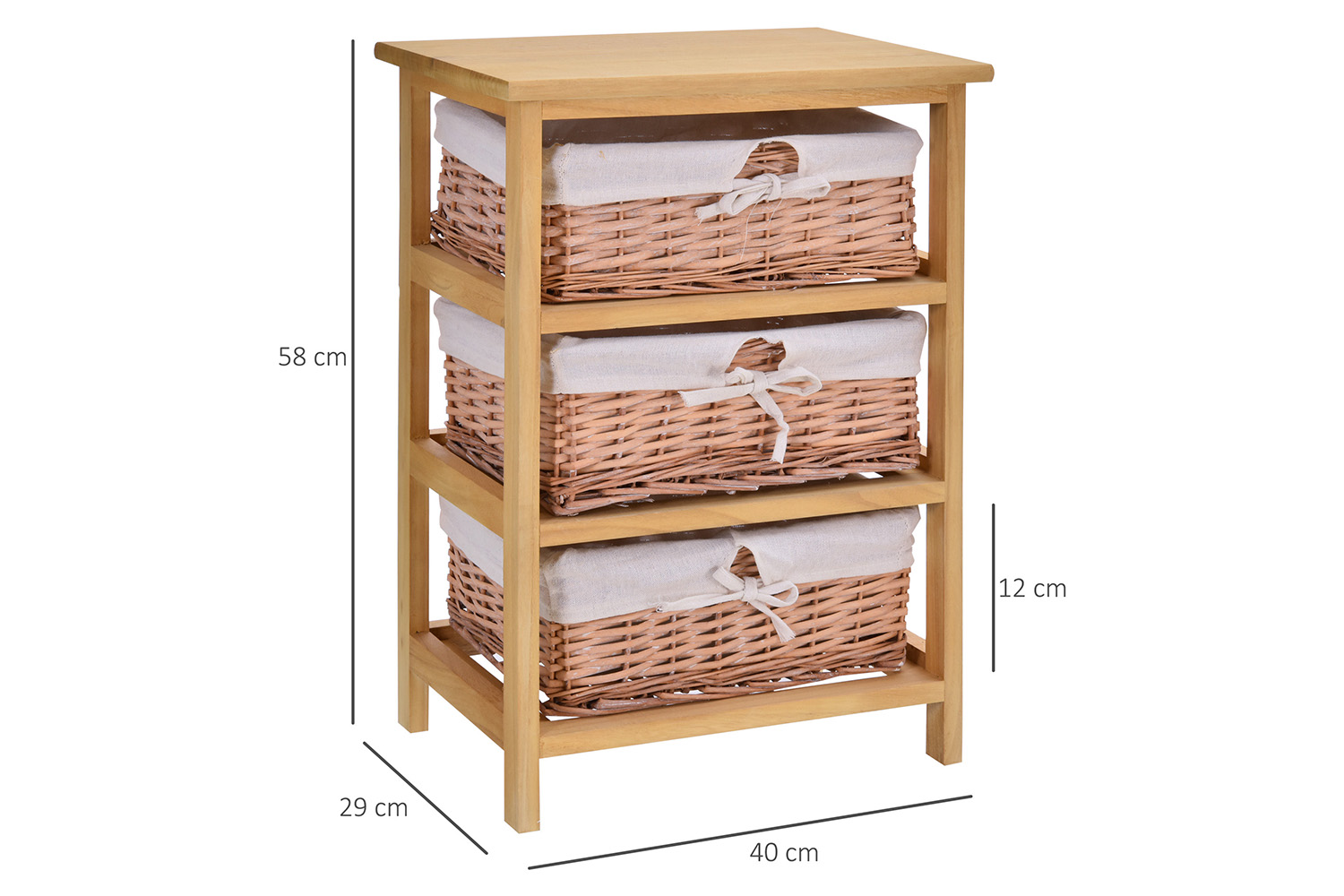 Let beautiful craftsmanship keep your home tidy with this storage basket from Homcom. Multi-tier design, there is plenty of room for storage, with the wicker baskets for beauty, and removable lining to keep them clean. A wooden frame ensures a durable structure, with a water-resistant coating for protection. It's finished with four legs for even balance, and arrives already assembled and ready to go.