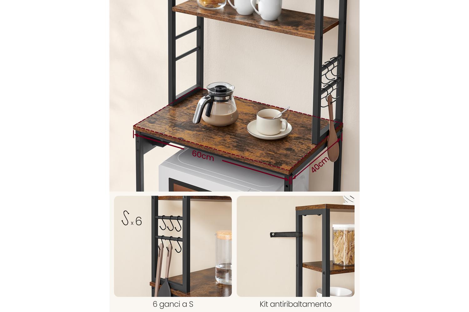 Upgrade your kitchen storage and enjoy a clutter-free, stylish space with the VASAGLE Kitchen Shelf—designed to meet the needs of modern Irish homes.