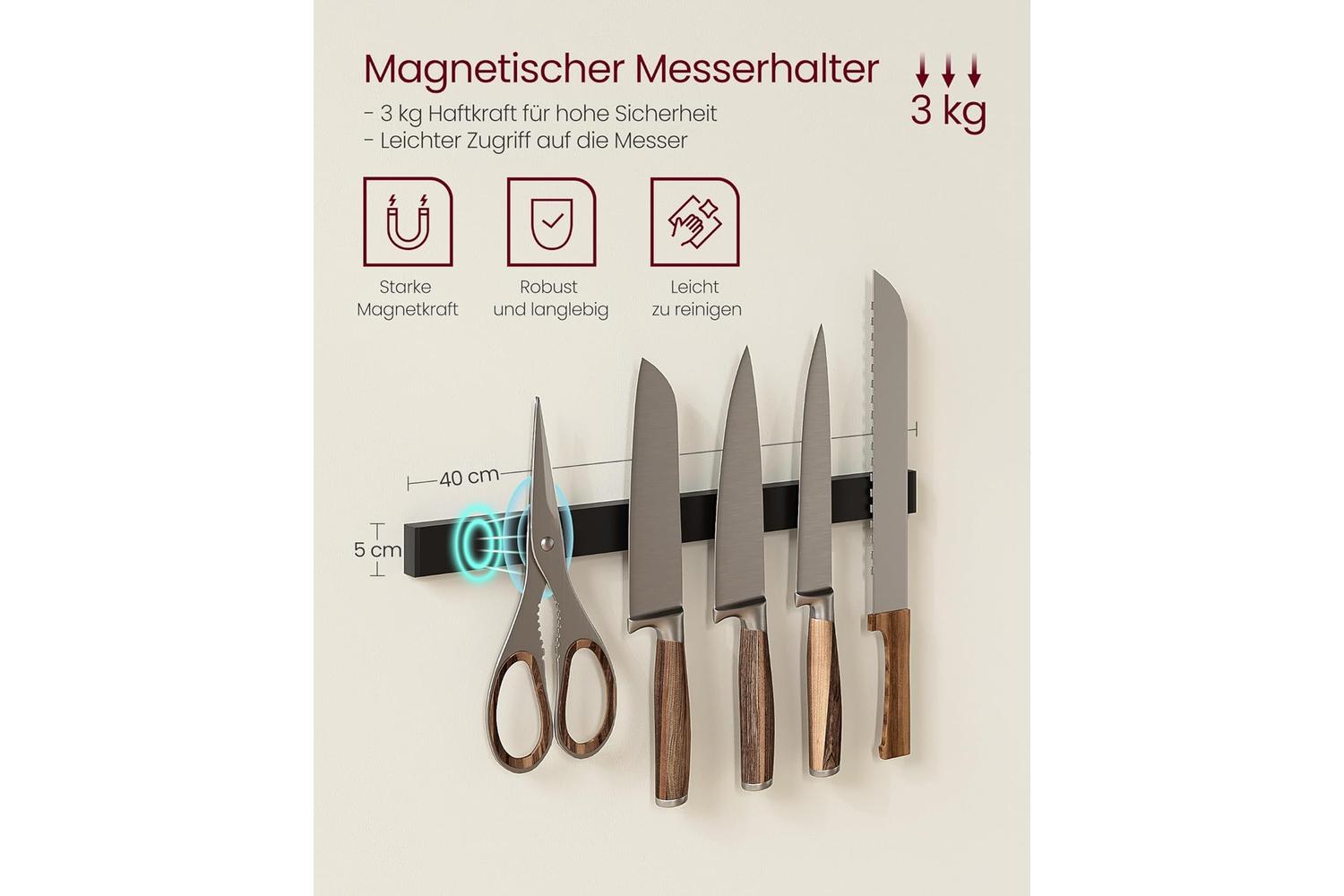 - Integrated kitchen roll holder and magnetic knife strip