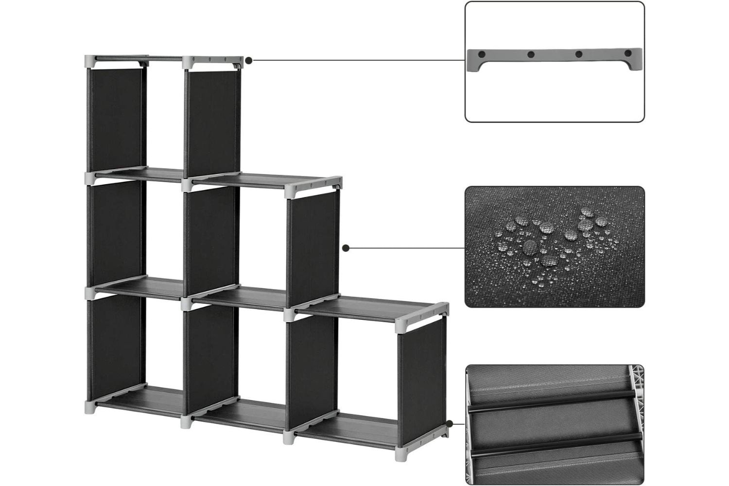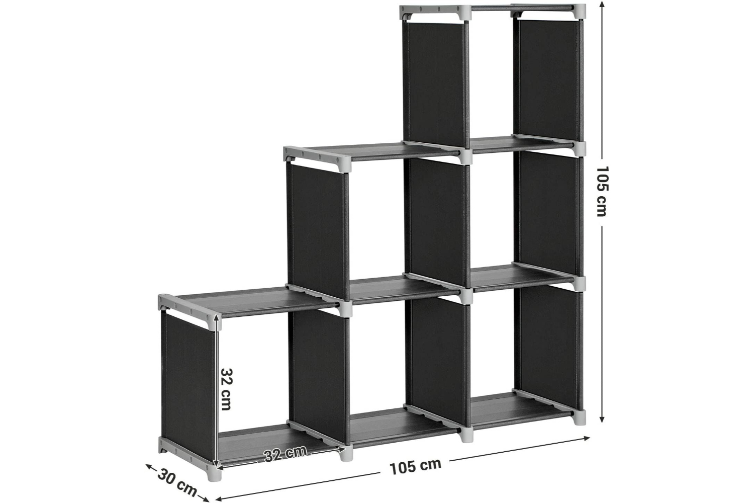 • Abundant storage space: 6 cubes in total for a variety of items, for each cube inside measures 12 5/8" x 11 3/4" x 13 1/8" (32.2 x 29.8 x 33.2 cm) can hold items range from pantry items, folding clothes and shoes to books, toys, artworks and fabric drawers; 3 top fabric shelves offer you extra space for lamp or clocks