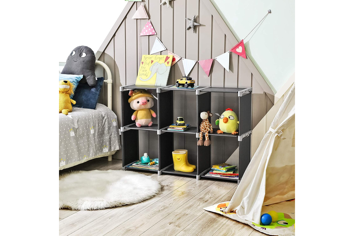 • Considerate design: Side shelf design for each cube to prevent items from falling down to one side