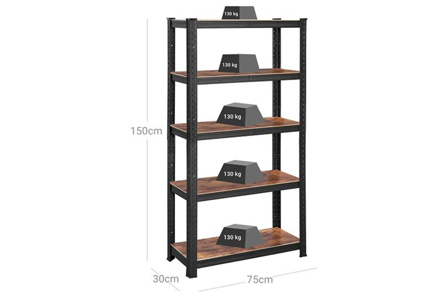Songmics Shelving Unit Bookshelf Storage Rack 5 Shelves Kitchen Shelving Unit 150 x 75 x 30 cm Loads up to 650 kg Adjustable Shelves Industrial Style Black Vintage Brown GLR030B01