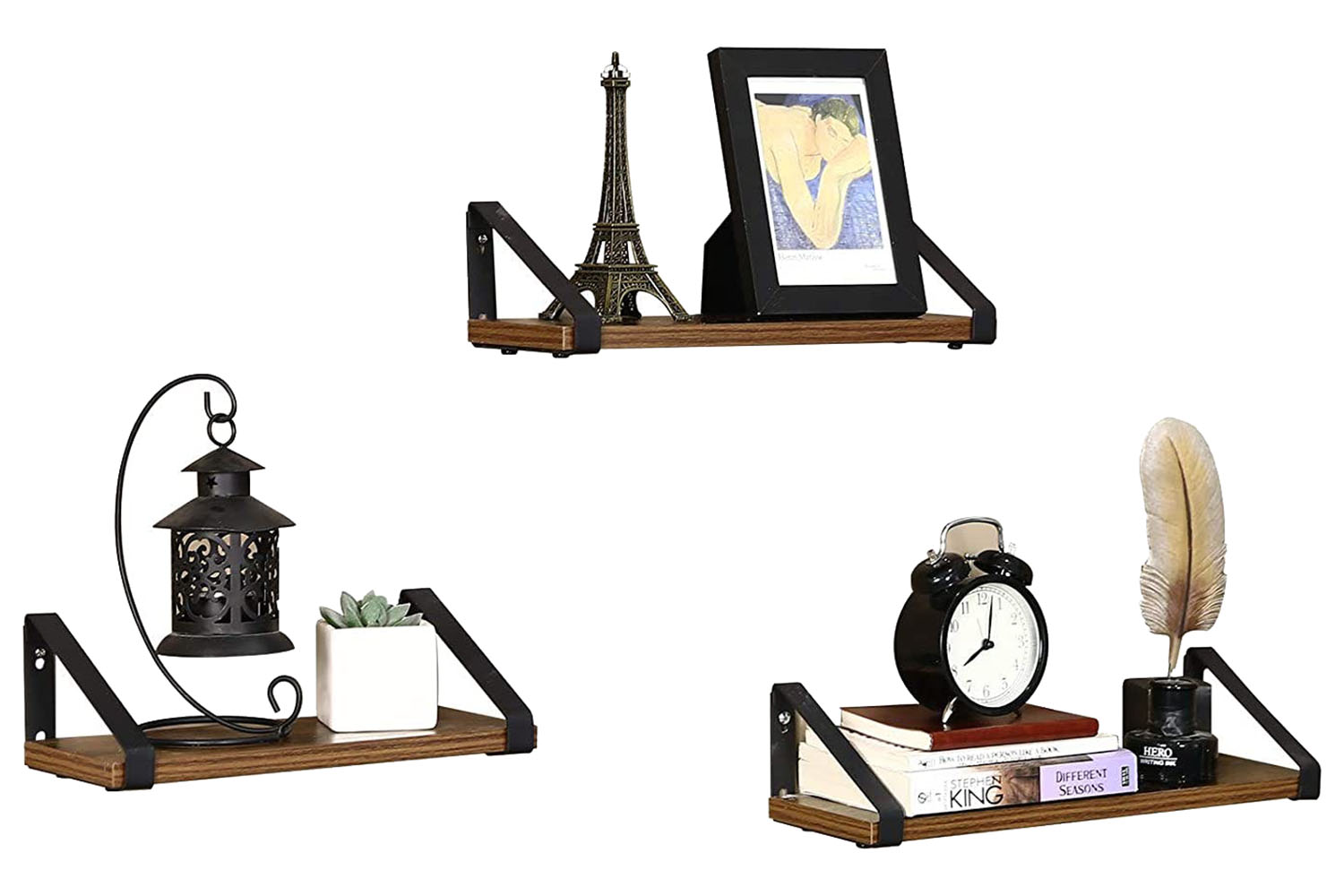 With durable engineered wood and iron brackets for long-lasting support, the wall mounted shelves work like a charm even when packed with books, potted plants, spices, or toiletries