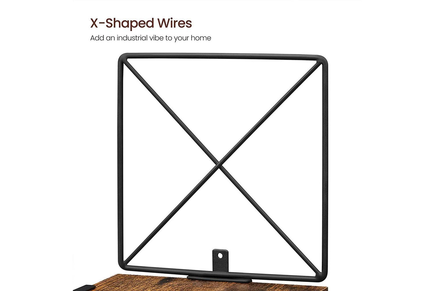 This corner wall shelf makes the most of an empty corner without taking up any floor area! With a zigzag design, rustic brown shelves, and black X-shaped wires, it also adds a bit of character