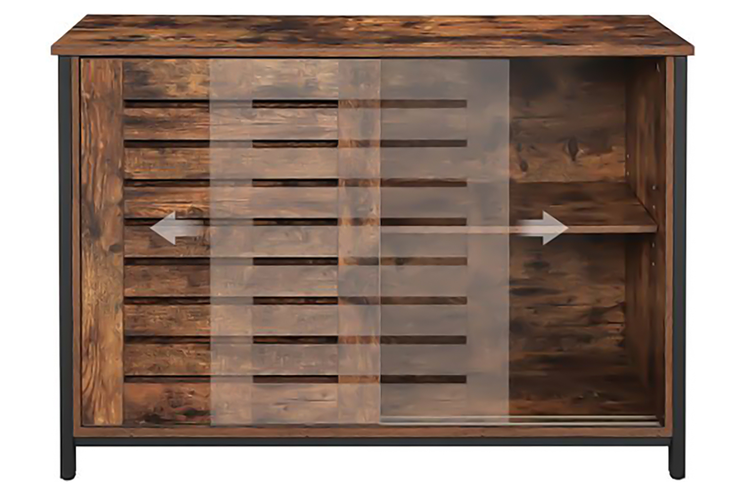 If your kitchen lacks spice, your dining room lacks pepper, or your living room lacks taste, then give your rooms that final touch with this sideboard with a black steel frame and rustic brown louvered doors