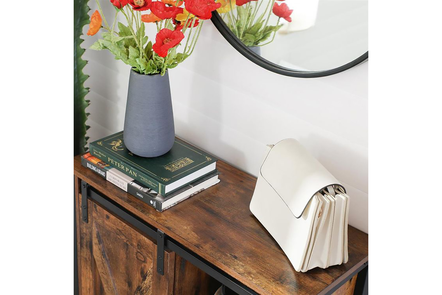 VASAGLE Storage Cabinet Cupboard, Multipurpose Cabinet with Adjustable Shelves, Sliding Door, Steel Frame, for Kitchen, Living Room, Entryway, Industrial, Rustic Brown and Black ULSC88BX