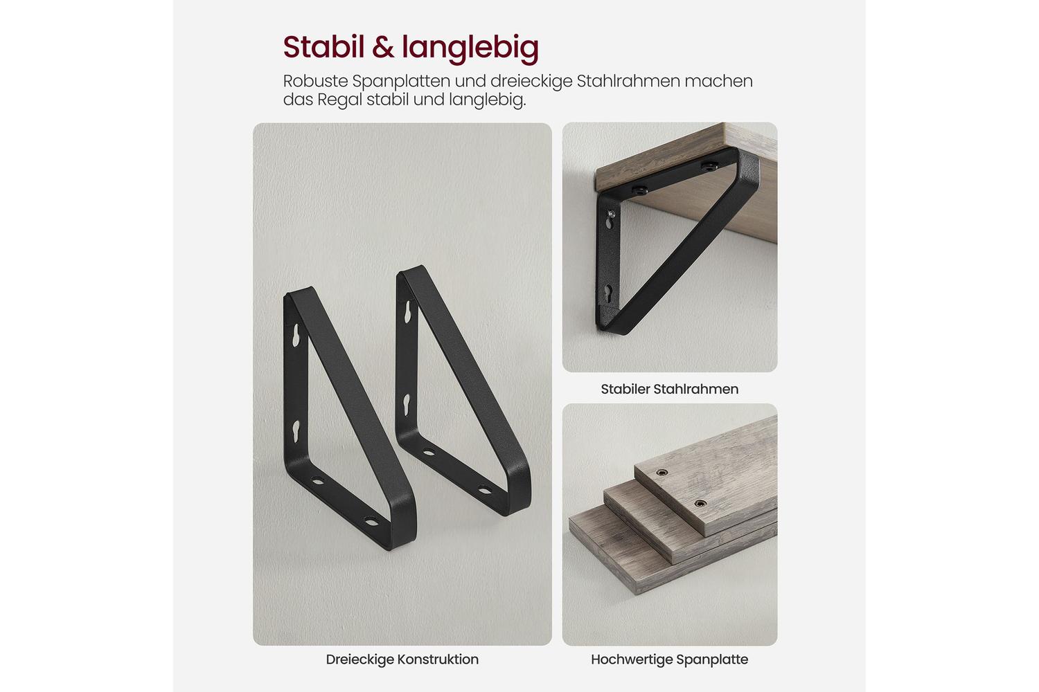With a contemporary greige-black finish, the VASAGLE Wall Shelf Set complements a wide range of interiors, from classic to modern. The three-shelf set offers flexible storage options, allowing you to arrange them together for a striking feature wall or separately to maximise space in different rooms. Each shelf is engineered to hold up to 5 kg, making them ideal for everything from decorative ornaments to everyday household items. The sturdy steel brackets ensure reliable support, while the wood chipboard shelves provide a warm, inviting look that suits Irish tastes and lifestyles.