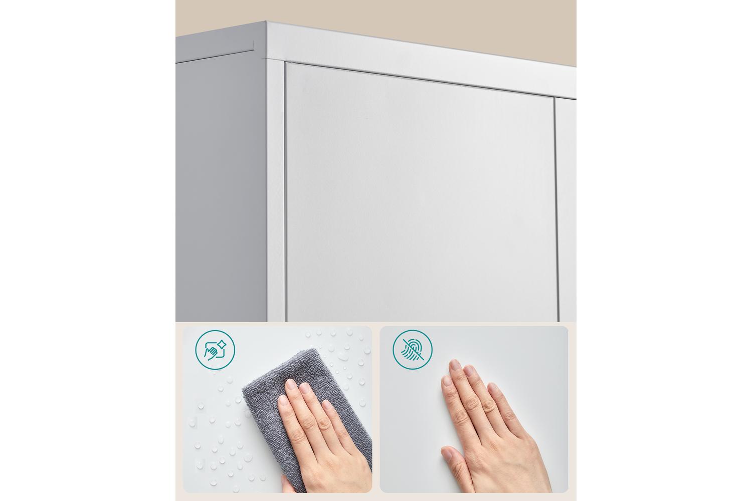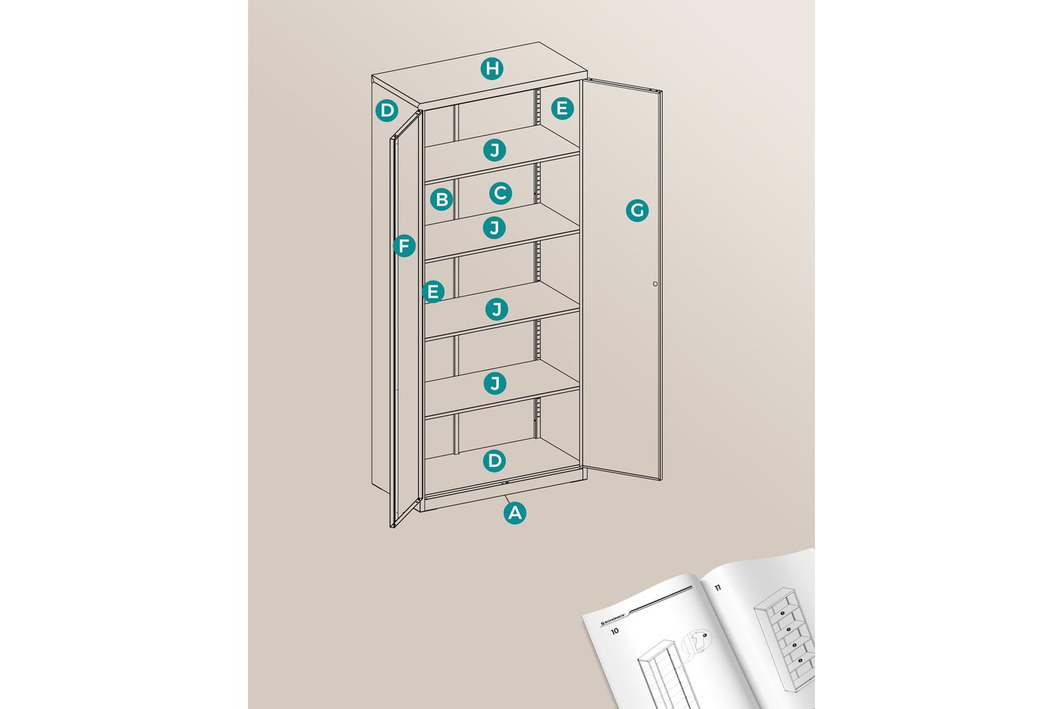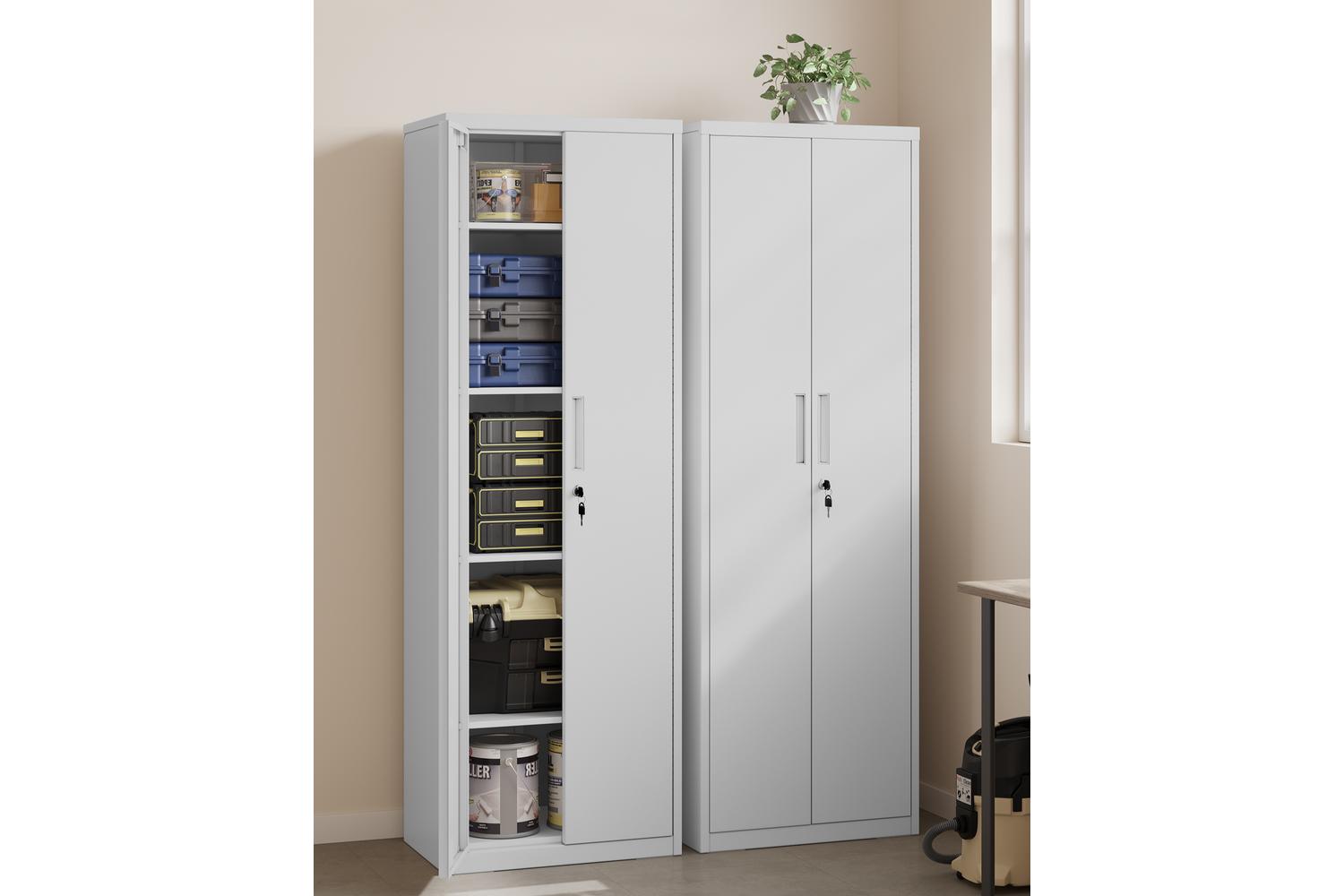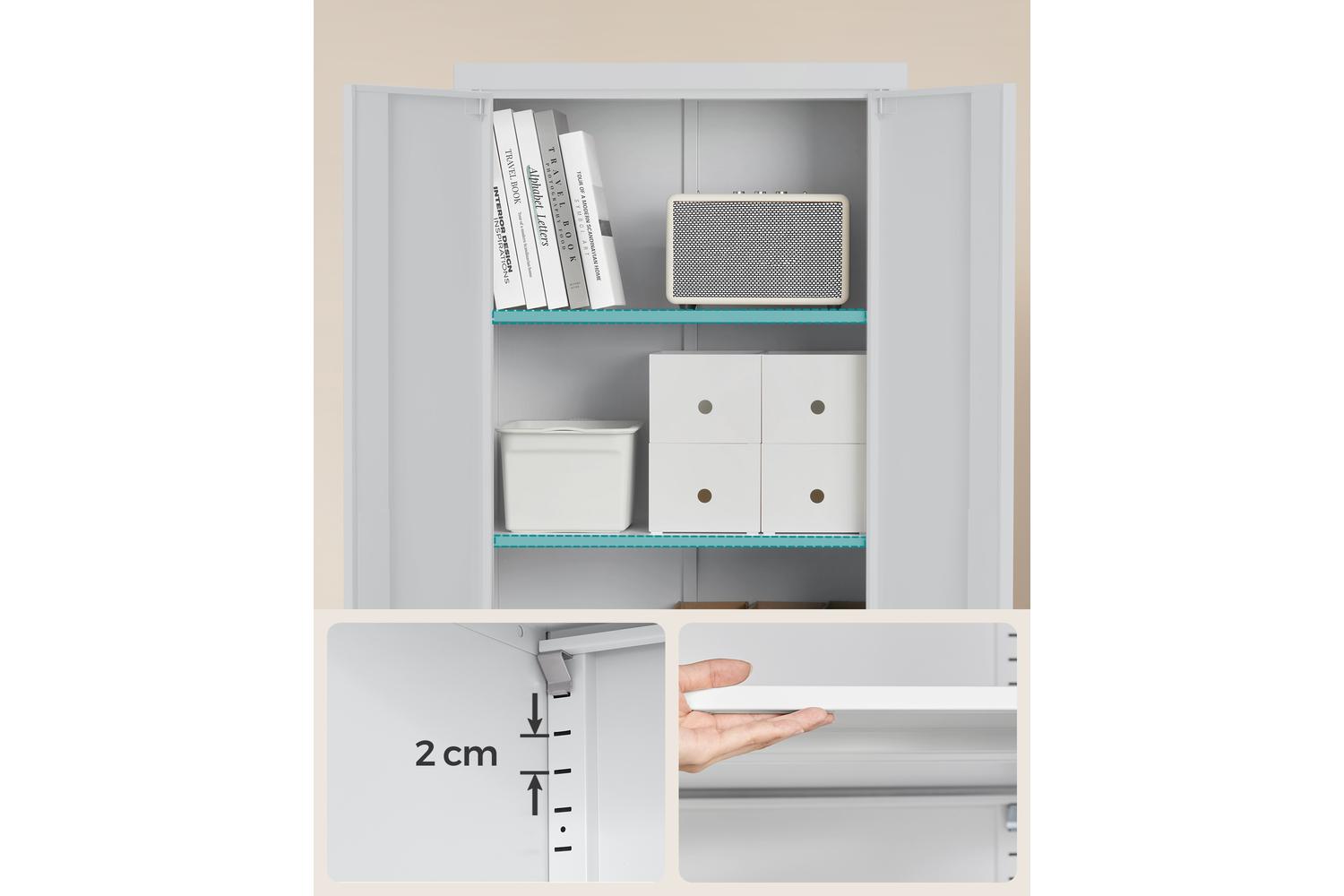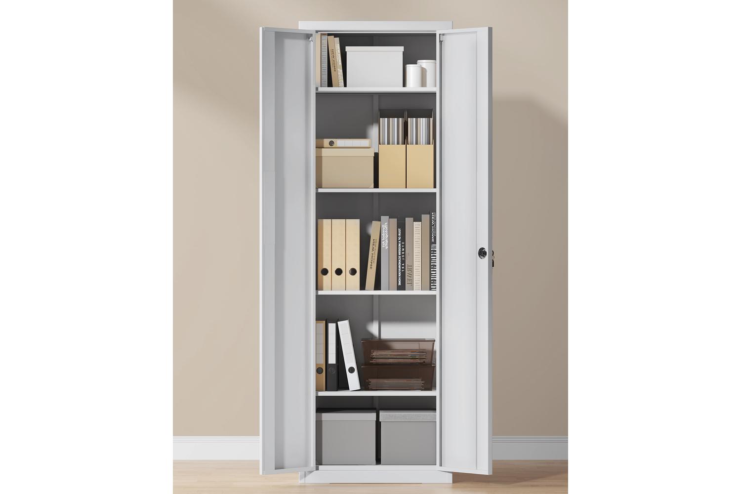 Built from high-strength, powder-coated steel, this tall cabinet stands out for its durability and resilience. Each of the four adjustable shelves can hold up to 25 kg, giving you the flexibility to store everything from bulky files to heavy toolboxes. The powder-coated finish not only resists rust, oil, and fingerprints but also ensures the cabinet remains easy to clean and looking like new for years to come. The double doors open wide for quick access, while the sturdy steel lock and included keys keep your confidential items safe and secure.