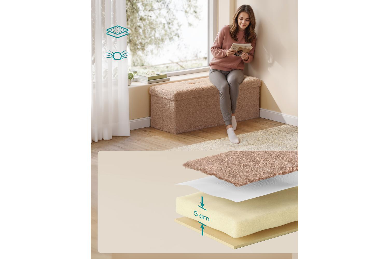 Built to last, the SONGMICS HOME Ottoman features robust MDF panels and reinforced metal corners, supporting up to 300 kg. This makes it a reliable choice for everyday use, whether you need a sturdy seat, a handy footstool, or a convenient coffee table. The high-resilience foam ensures lasting comfort, so you can relax in style after a long day.