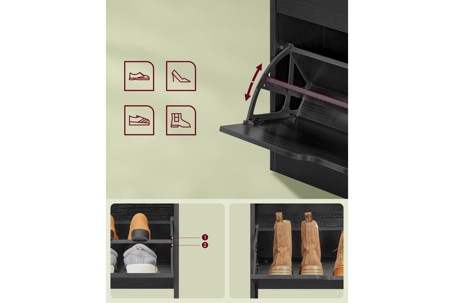 Upgrade your home organisation with a shoe storage solution that is as attractive as it is efficient. The VASAGLE Shoe Cabinet is the ideal addition to any hallway, bedroom, or utility room, offering a smart way to keep your shoes neatly stored and easily accessible. Enjoy the peace of mind that comes with a clutter-free environment and make a stylish statement with this must-have household storage cabinet.