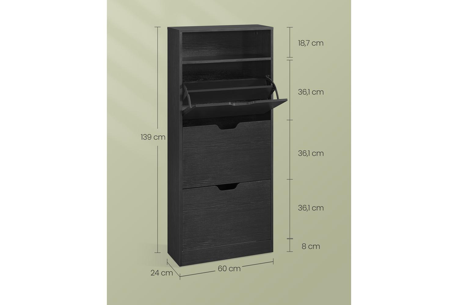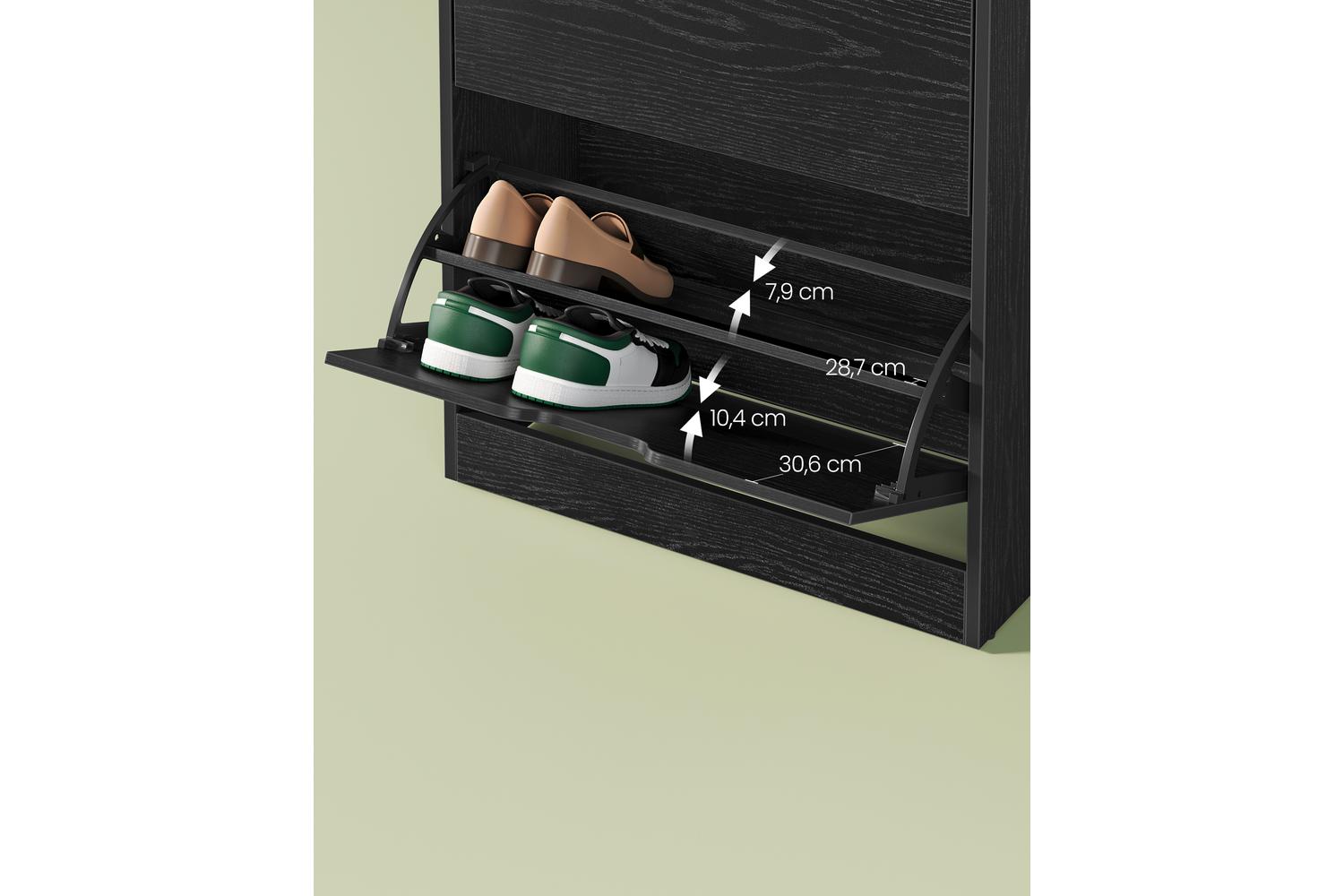 Transform your hallway or bedroom with the VASAGLE Shoe Cabinet, a sleek and practical storage solution designed for modern Irish homes. Crafted from durable particleboard in a sophisticated ebony black finish, this shoe storage cabinet blends seamlessly with contemporary interiors while keeping your footwear organised and your space clutter-free.