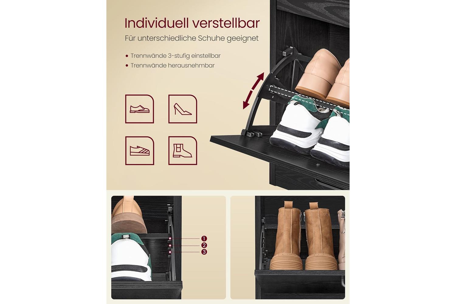 Keep your home tidy and stylish with the VASAGLE Shoe Cabinet, the perfect solution for busy Irish households seeking practical storage and modern design. Crafted from durable particleboard in a sleek ebony black finish, this shoe storage unit blends seamlessly with contemporary interiors, making it an ideal addition to your hallway, porch, or bedroom. Say goodbye to cluttered floors and mismatched shoes—this cabinet offers a smart, space-saving way to organise your footwear collection.