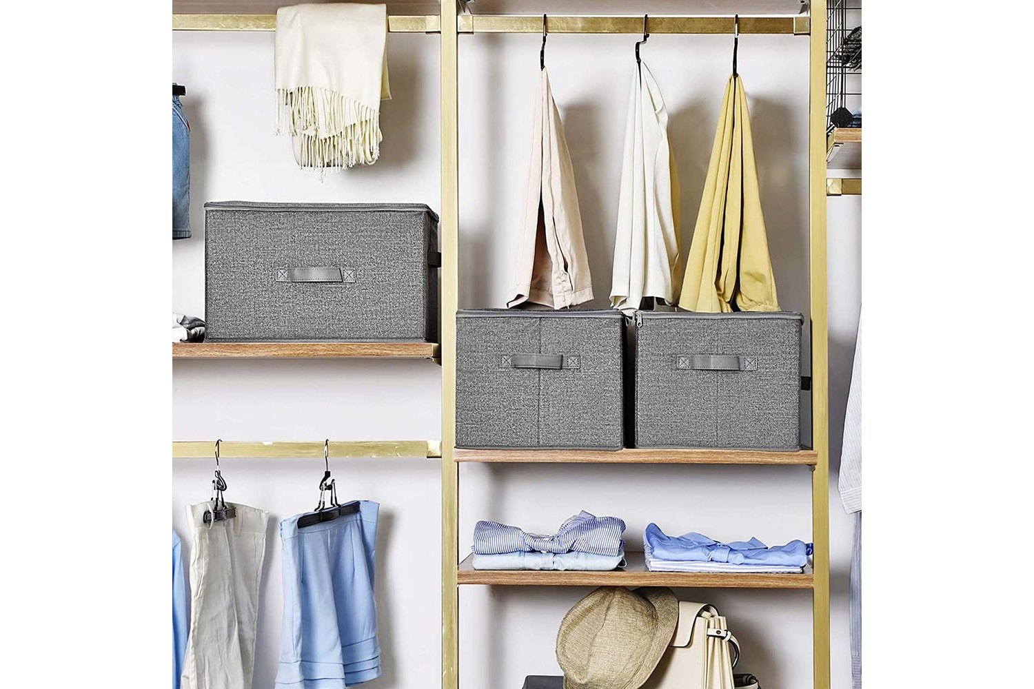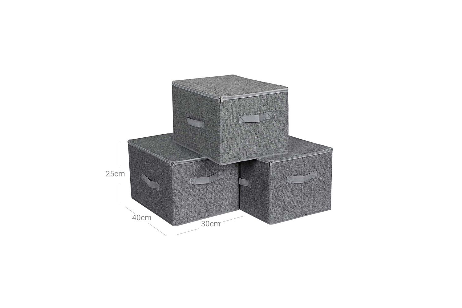 EVERYTHING HAS ITS PLACE: Lets face itclosets can get messy. Instead of piling up clothes that may collapse in the next second or wasting floor space on loose items, get all the thingsfrom sweatshirts to diapersorganised with this set of 3 storage boxesCOVER ON TOP: Need to pack the summer clothes away until next year? The lids on these boxes that zip open on three sides will keep them dust-free until you grab them from the bookshelves, above the wardrobe, or under the bedTHE RIGHT HUE: They are not just containers to throw things into; the linen patterned non-woven fabric with a grey hue lends a fitting and breezy feel to compliment your homeOPTIONS ARE YOURS: Pull the bin off the shelves with the front handle, or carry it from the living room to the playroom with the 2 side handles. Even better? The box folds flat in a minute until next time you need itSpecifications:- Colour: Grey with Linen Pattern- Material: 2 mm Thick Cardboard, 80 g/? Non-Woven Fabric- Product Size: 40 x 30 x 25 cm (L x W x H)- Product Weight: 1.9 kg- Max. Static Load Capacity of Each Box: 3 kg Package Contents:- 3 x Storage Box