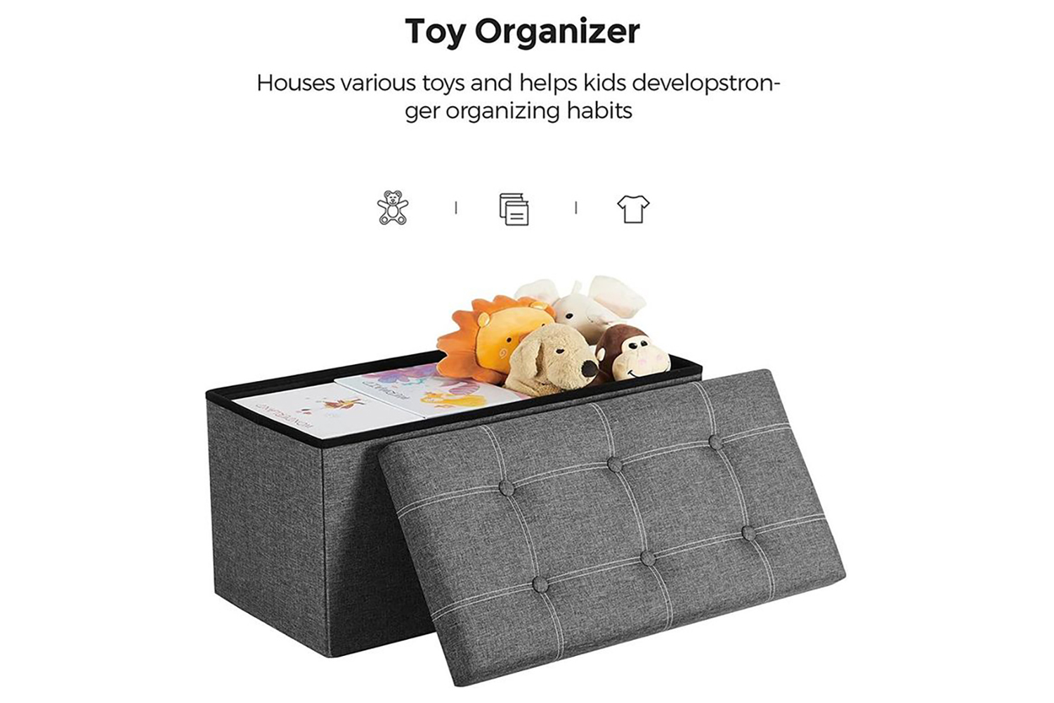 Tuck away pillows and magazines? Tidy up a myriad of your little one's toys? Or store out-of-season clothes to release the stress of your closet? No problem! This ottoman with 21 gal. space gets you covered
