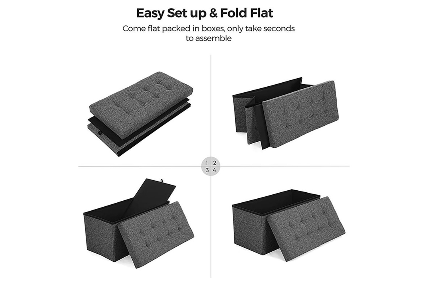 With only 4 pieces and easy-to-follow instructions, this folding storage ottoman bench will be ready in no time. Then you can keep the mess under control in a simple way while offering extra seating to your home